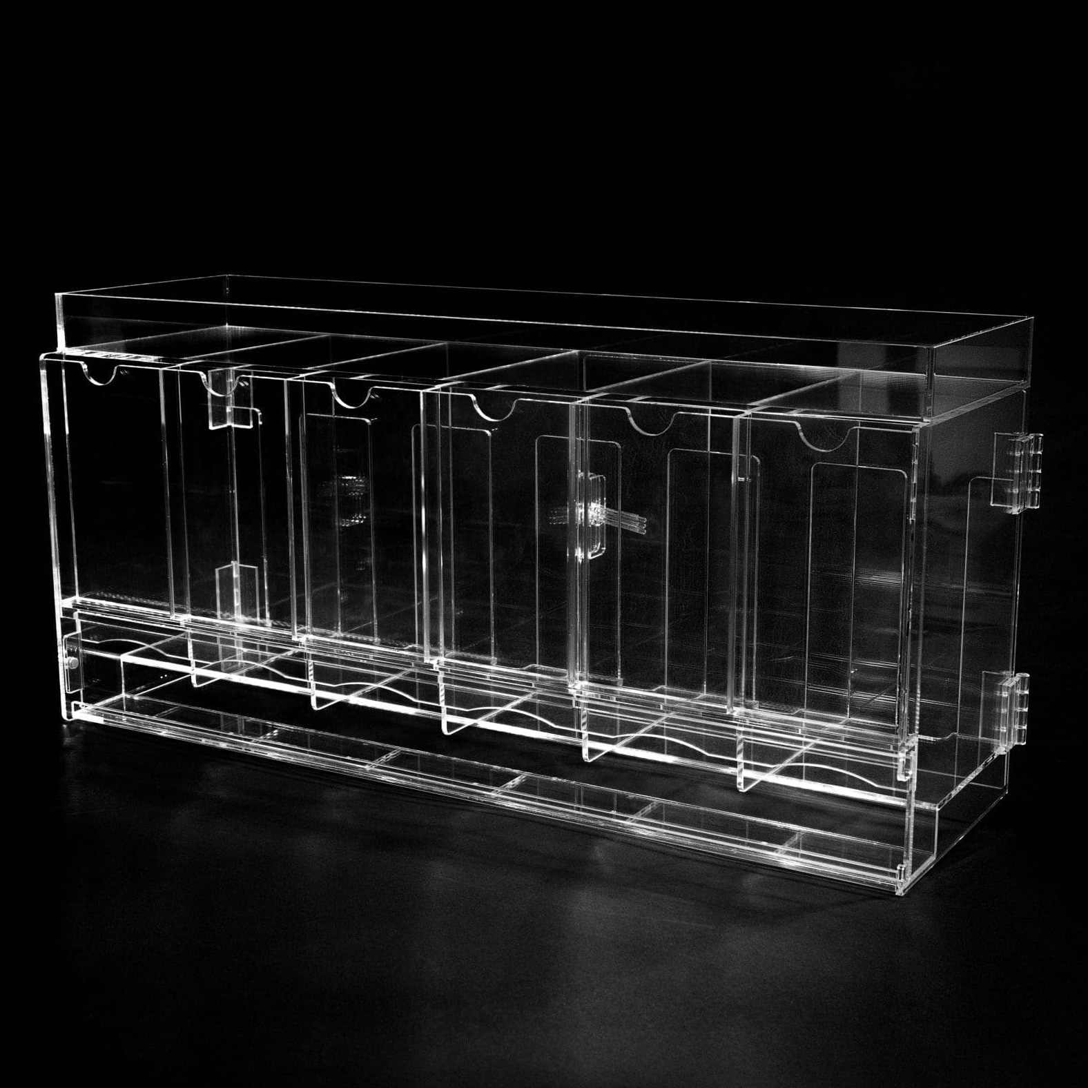 Akrylboksen med 6 rom er den ideelle løsningen for butikker og streamere som vil vise, oppbevare og beskytte pakkene sine. Hvert rom rommer en hel boosterboks (minst 36 pakker). Den stabelbare utformingen sparer plass, og rommene passer til flere TCG-merker.