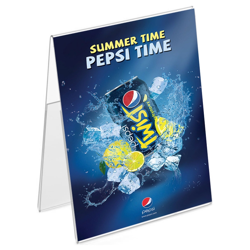 A-formet akryl bordskilt som også er kjent som "roof stands" eller "tent card holders".