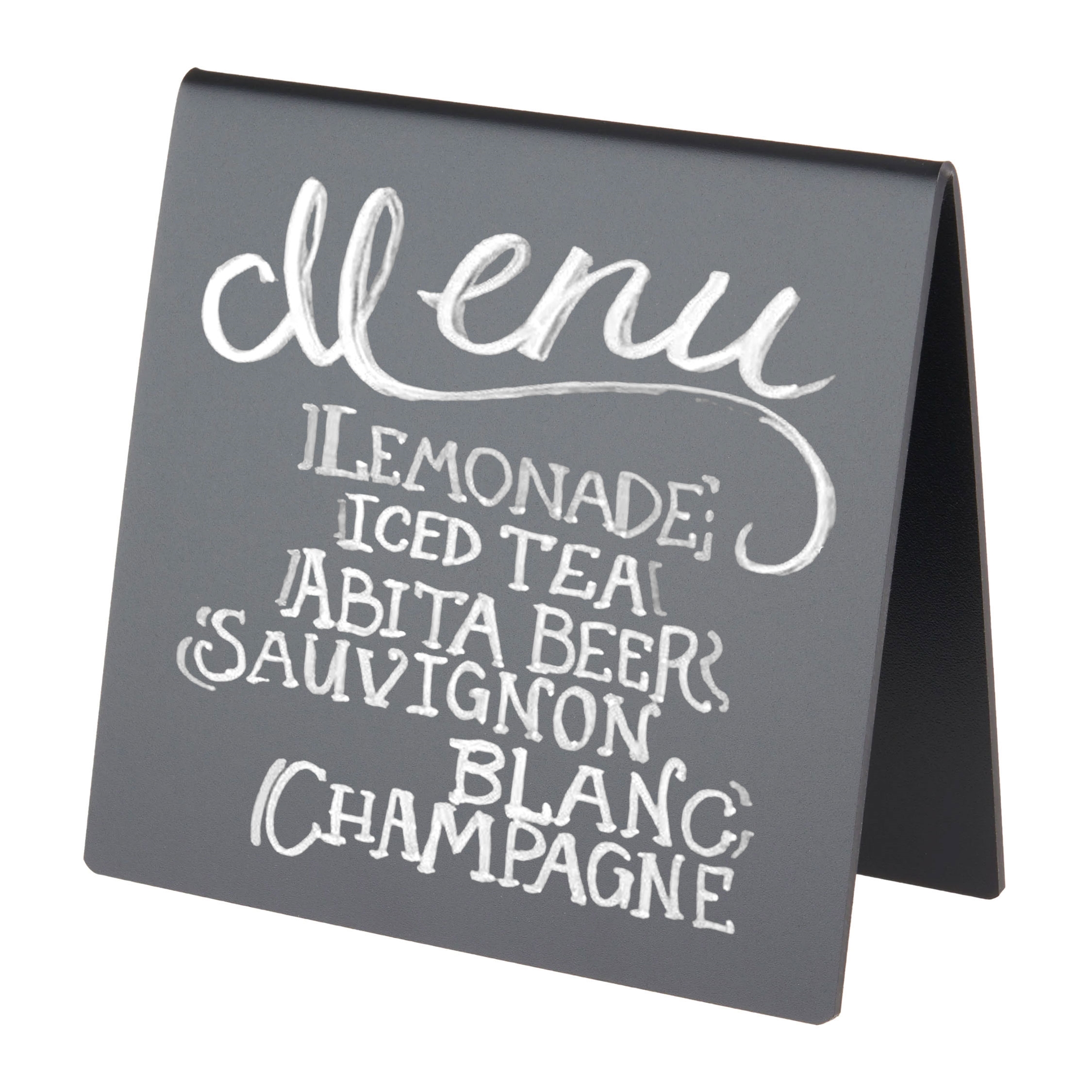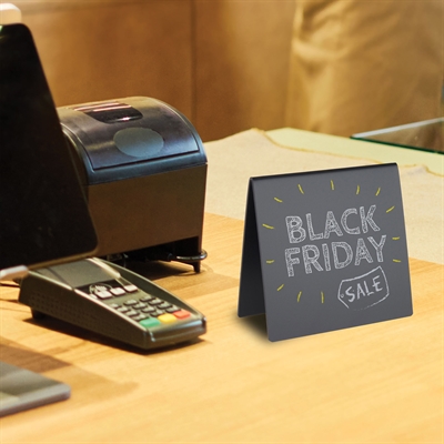 Dette stilfulle bordskilt i sort plast er ideelt for kafeer, restauranter, buffeer og andre profesjonelle miljøer. Tavlen står stødig takket være den praktiske A-formen.