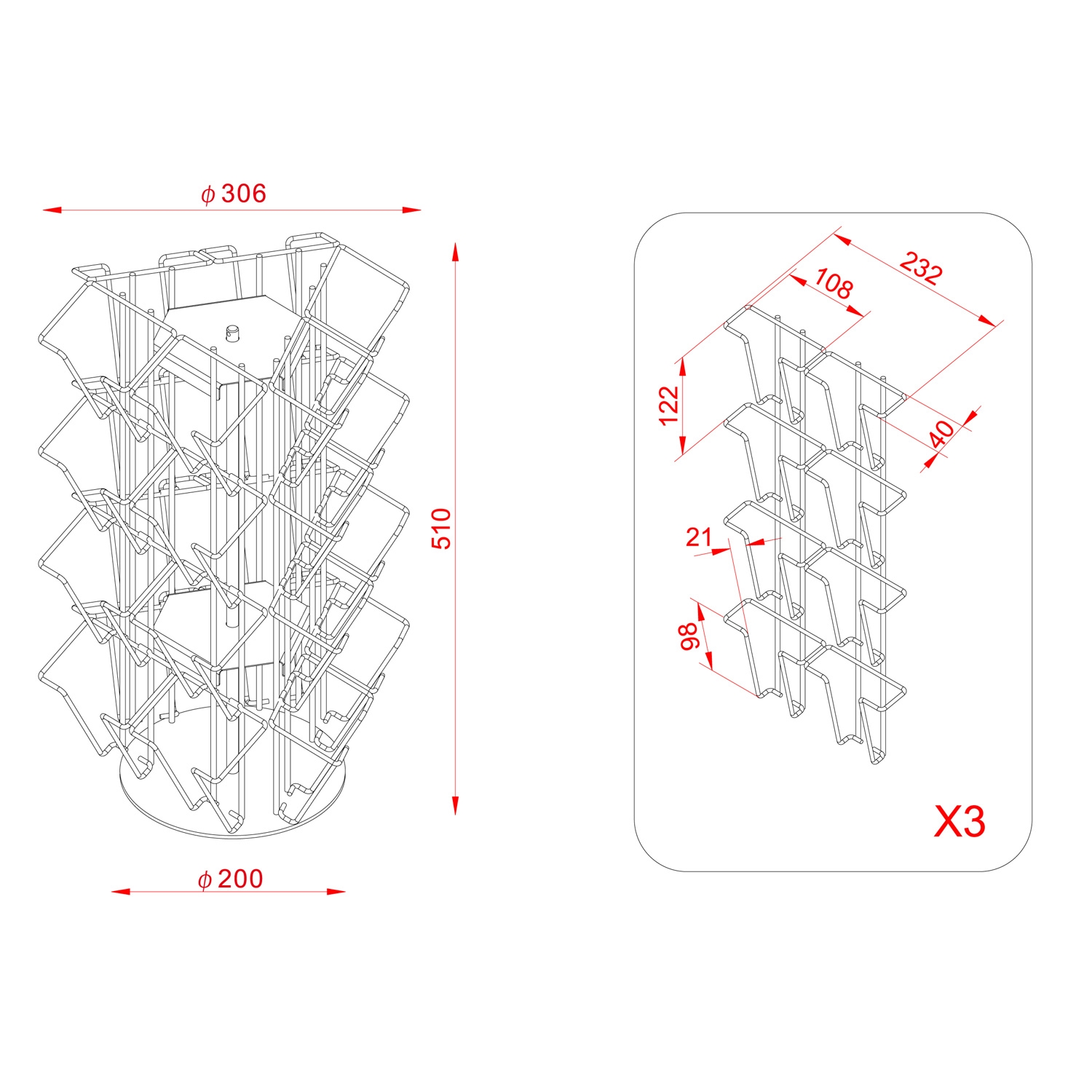 Produsert i tråd og polyesterlakkert i RAL9006 sølv.