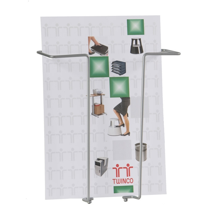 Brosjyreholder med 1 rom for A4-brosjyrer. Produsert i metal. Polyester-lakkert i RAL9006 sølv. For veggmontering