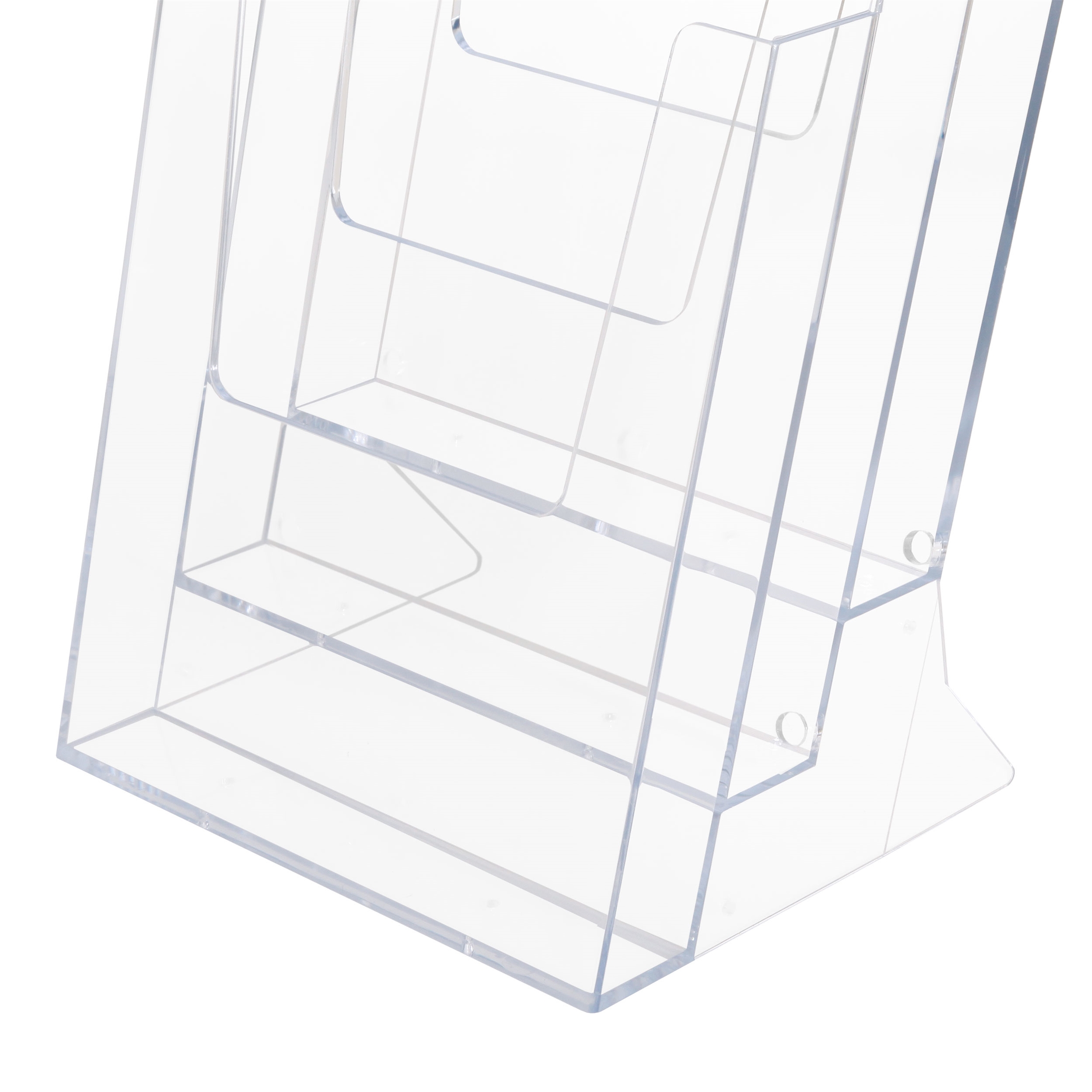 Disse brosjyreholderne er produsert i 3 mm krystallklar akryl, som er meget solid og gjør at brosjyrene kan sees fra alle vinkler.