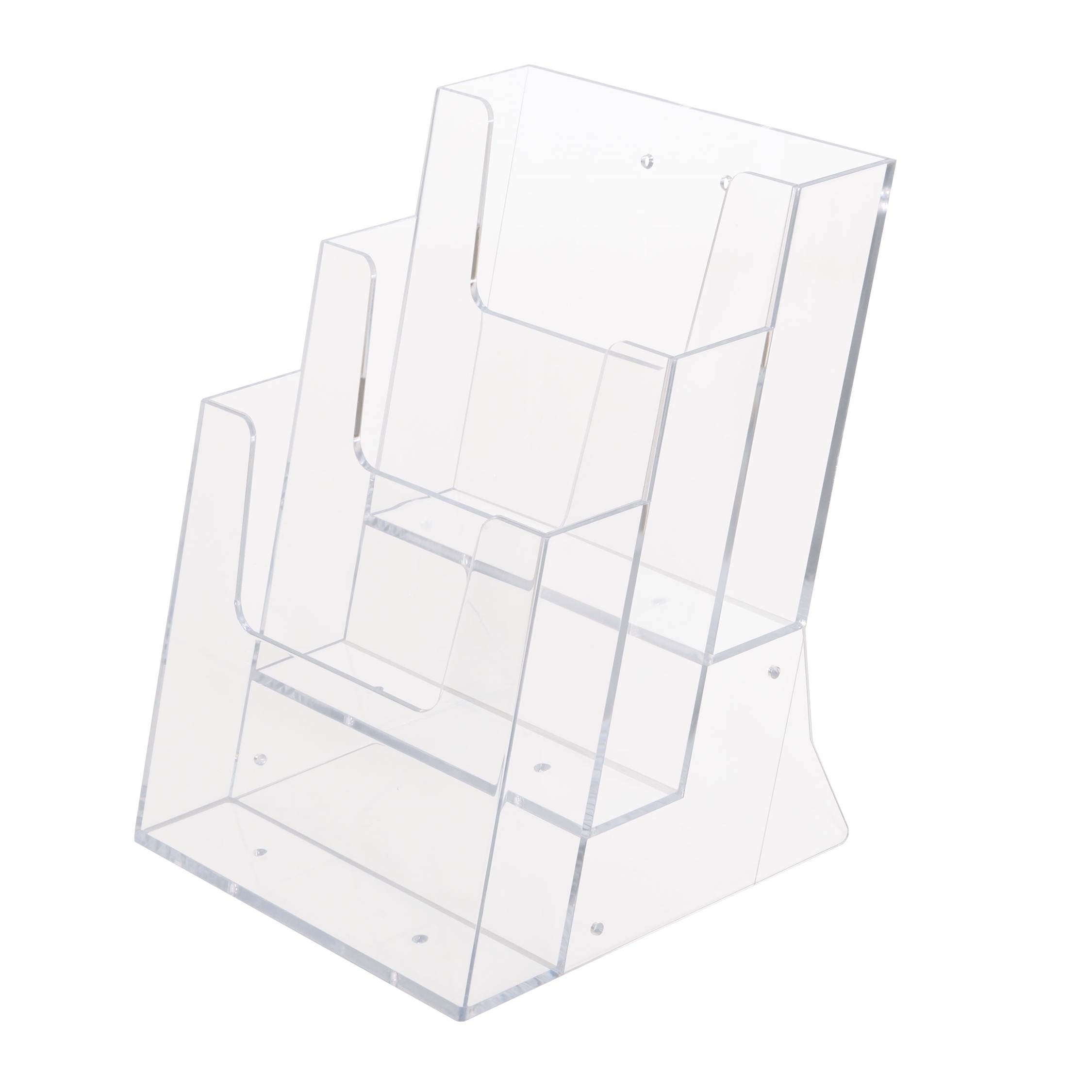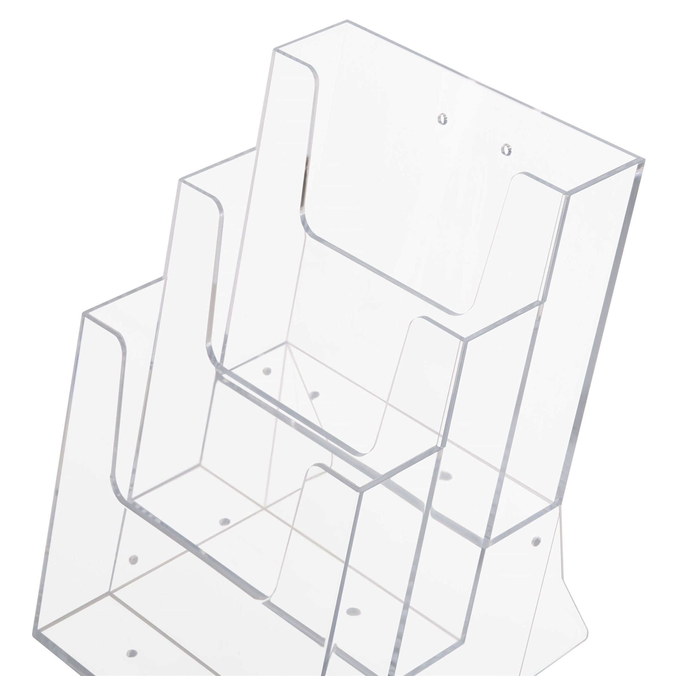 Disse høyformats 3-roms brosjyreholdere er egnet for å stå på bord, benker etc. og er vinklet litt bakover slik at brosjyrene sitter pent i holderen og enkelt kan ses fra øyehøyde.