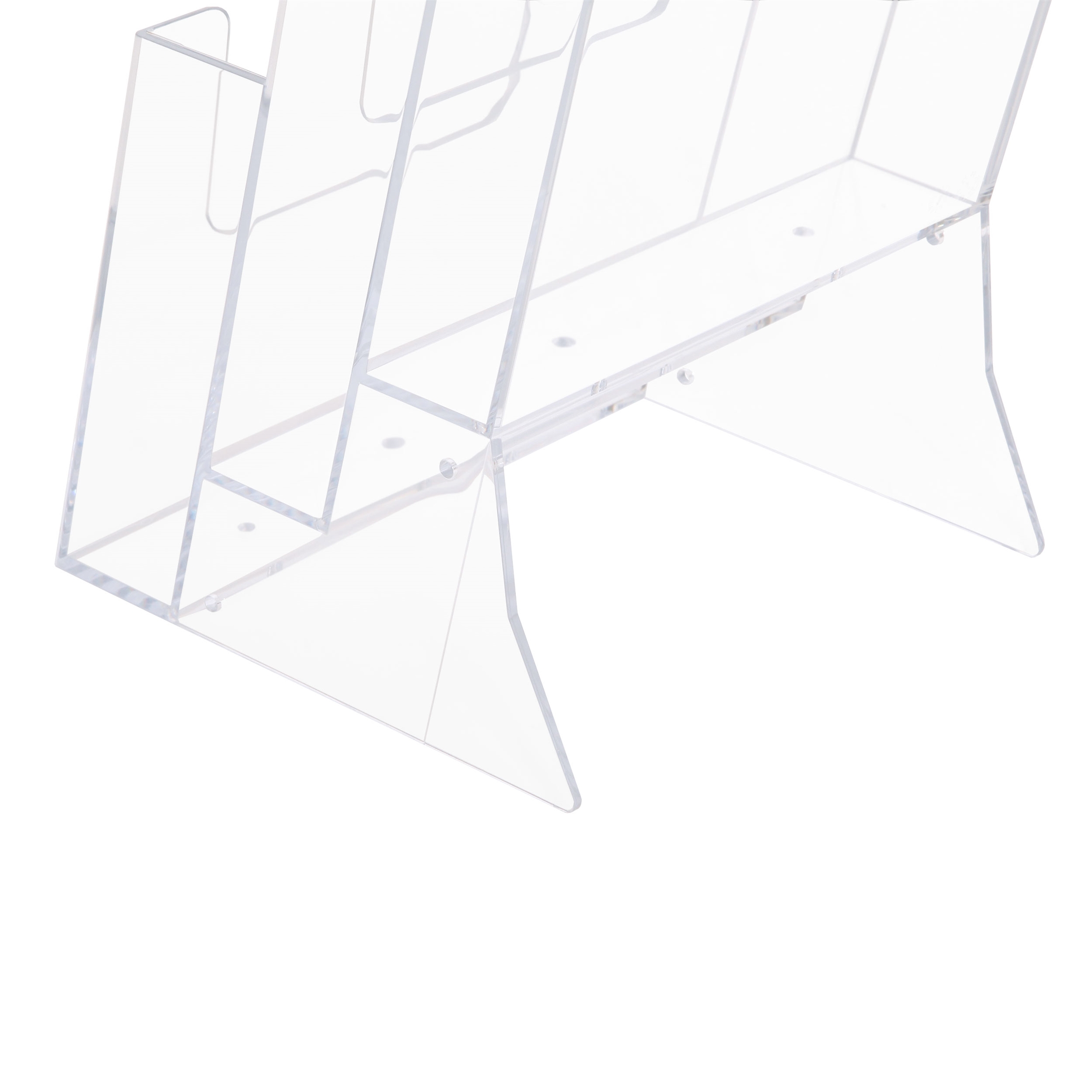 Disse brosjyreholderne er produsert i 3 mm krystallklar akryl, som er meget solid og gjør at brosjyrene kan sees fra alle vinkler.