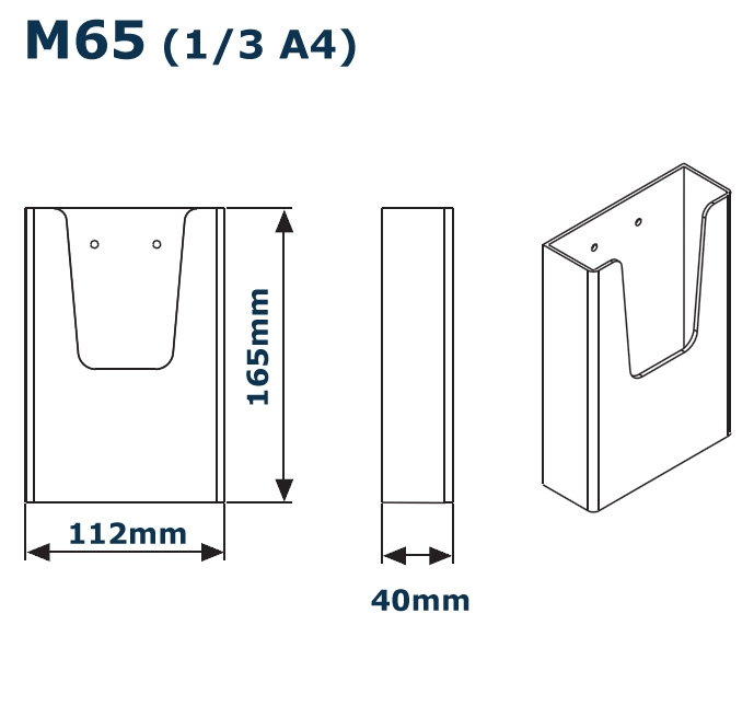 Brosjyreholderne i akryl til vegg finnes i både A4, A5 og A6-størrelse, som også passer perfekt til M65 (1/3 A4).