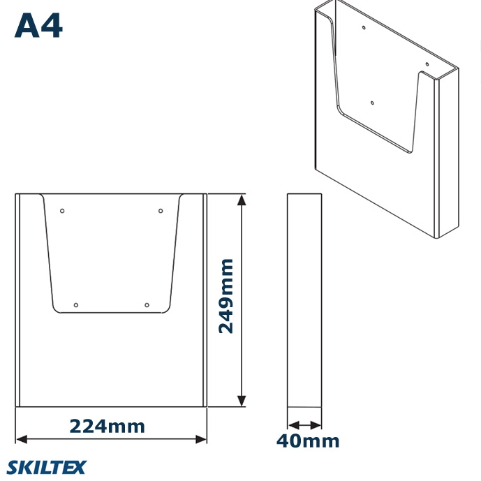 Disse meget populære og praktiske brosjyreholderne er produsert i 2 mm tykk glassklar akryl og kommer med 2 forhåndsborrede hull til veggmontering.