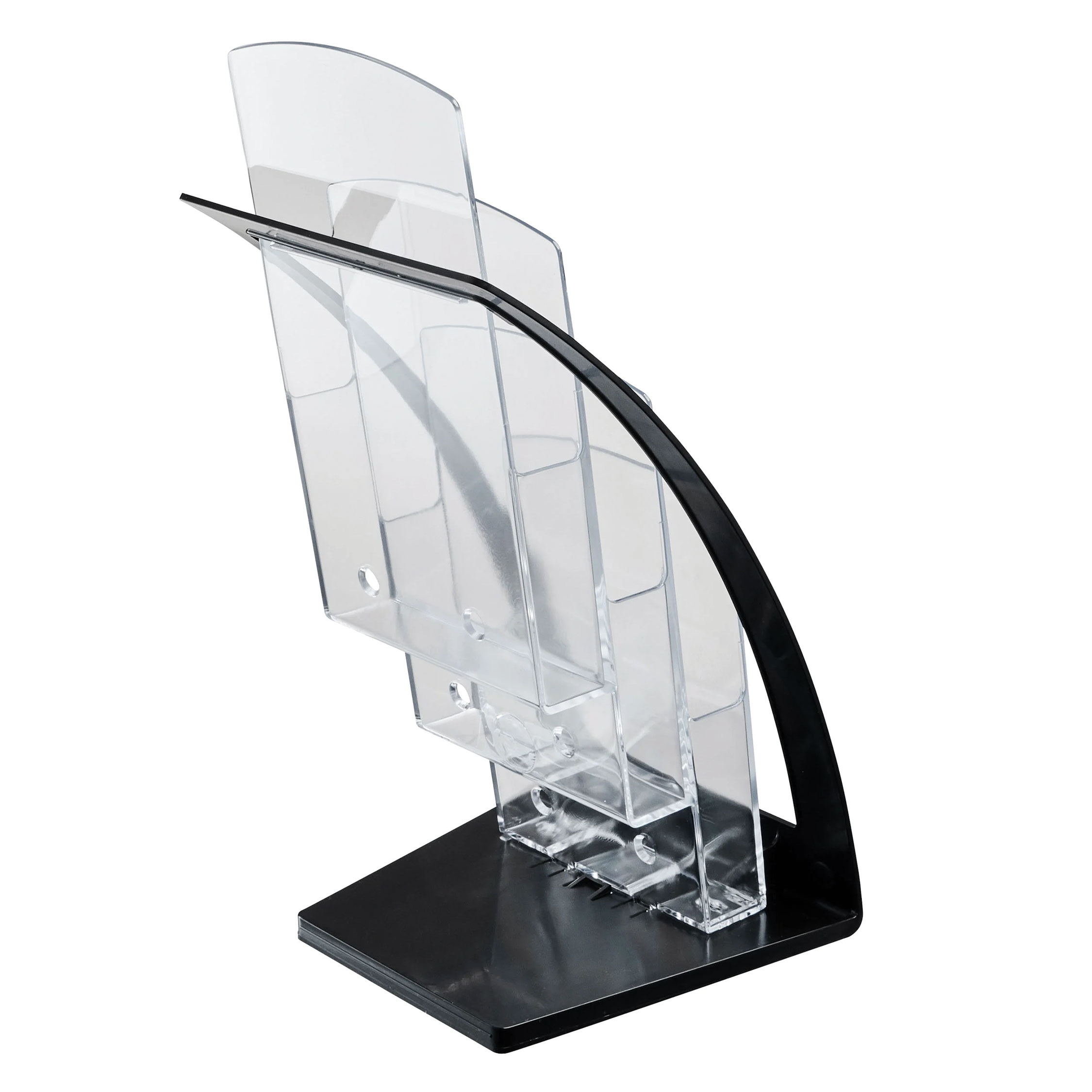 Akryl brosjyreholder med 3 rom og visittkortlomme - A6 / M65