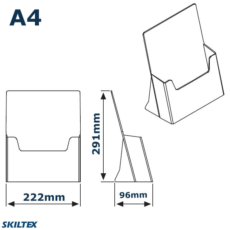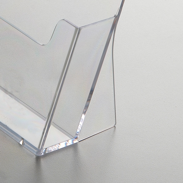 Disse brosjyreholderne er produsert i 3mm sprøytestøpt akryl av beste kvalitet, som gir en krystallklar og profesjonell finish. Egnet for å stå på et bord eller en benk. Disse brosjyreholderne er vinklet bakover, noe som gjør brosjyrene lettere å se fra øyehøyde.