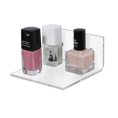 Akryl hylle til bla. utstilling av produkter. Hyllen er produsert i 4,0 mm glassklar akryl av høy kvalitet og har polerte kanter.