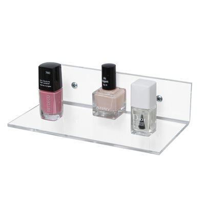 Akryl hylle til bla. utstilling av produkter. Hyllen er produsert i 4,0 mm glassklar akryl av høy kvalitet og har polerte kanter.