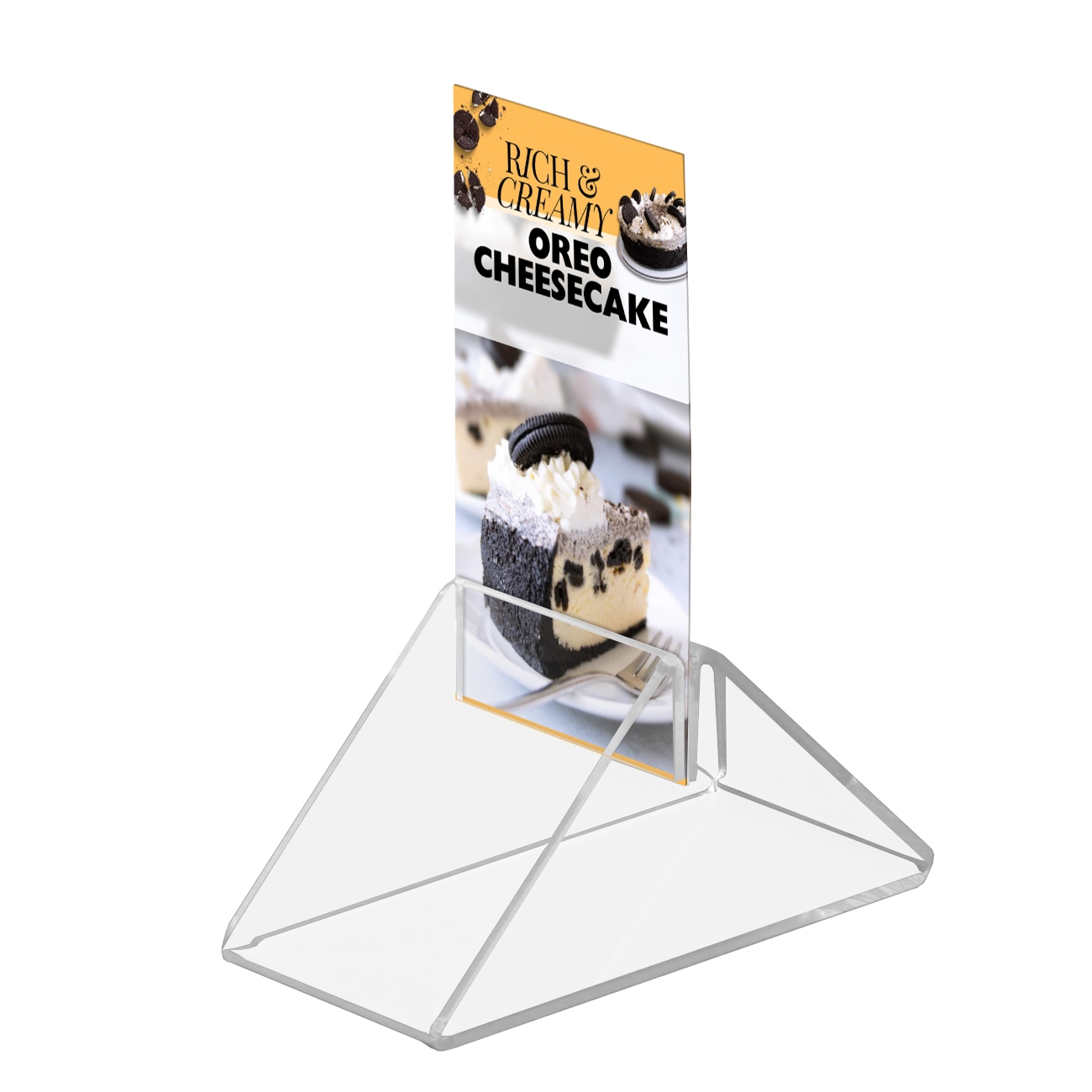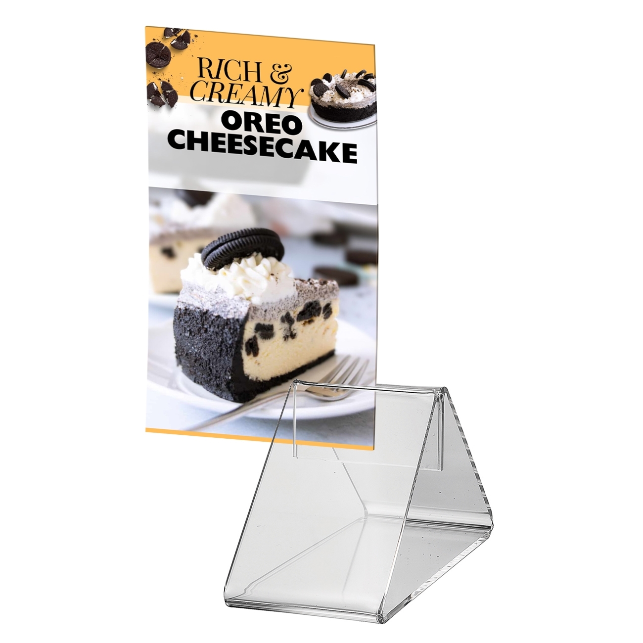 Denne smarte og gjennomsiktige akryl skiltholder er perfekt for presentasjon av menyer eller informasjon i A8 format på bord og disker. Det dobbeltsidige designet gjør det enkelt å vise informasjon fra begge sider, og innholdet kan raskt byttes ut etter behov.