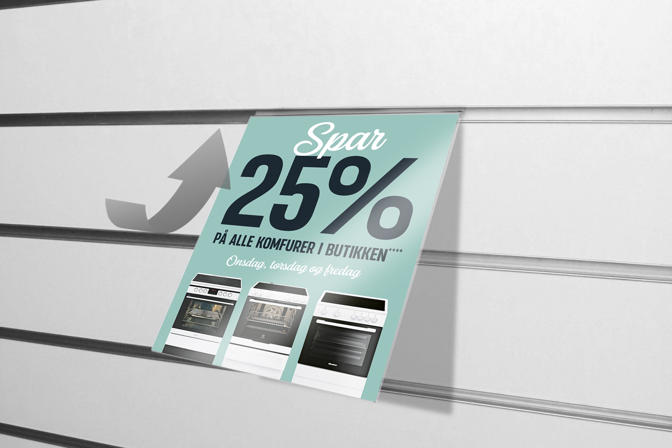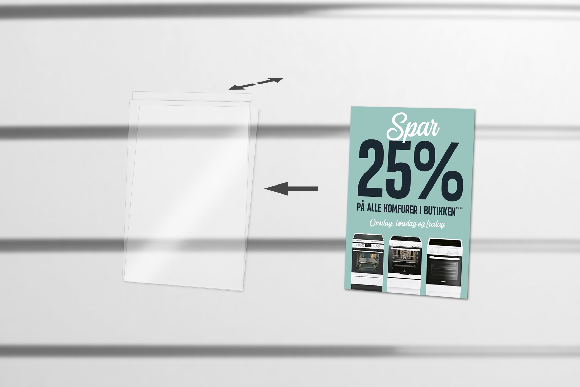 Skiltholderen er enkel å montere og utskifting av innhold gjøres raskt og enkelt. Designet passer for mange typer butikker, inkludert: Dagligvarebutikker, kjøpesentre, hvitevareforhandlere, butikkjeder og mange andre!