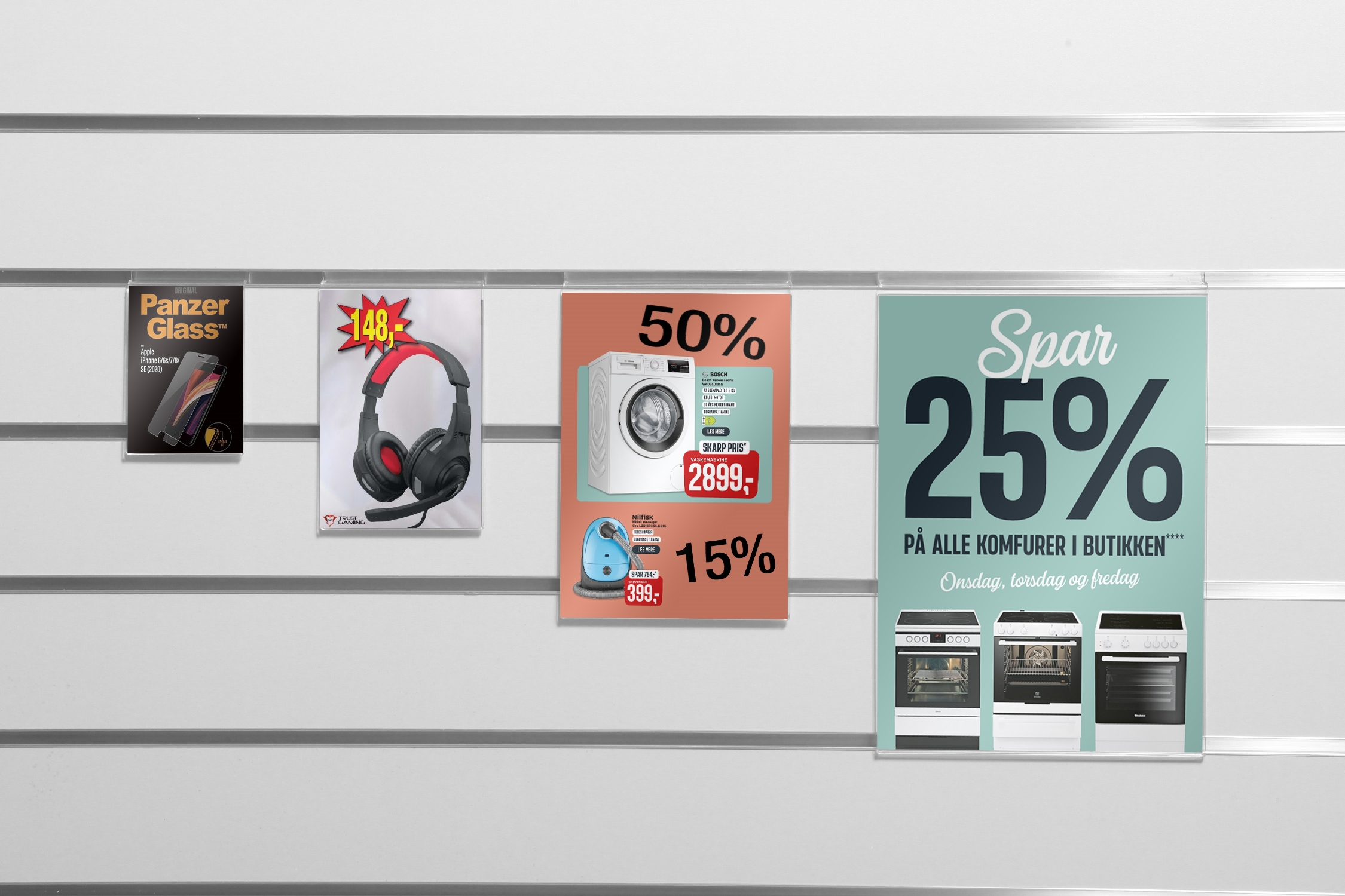 Akryl Skilteholdere til Slatwall / Rillepanel