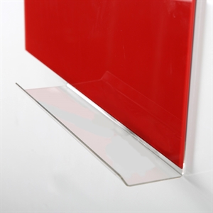 30 cm glassklar akrylhylle til montering på glasstavler. Hyllen er 6 cm i dyben.