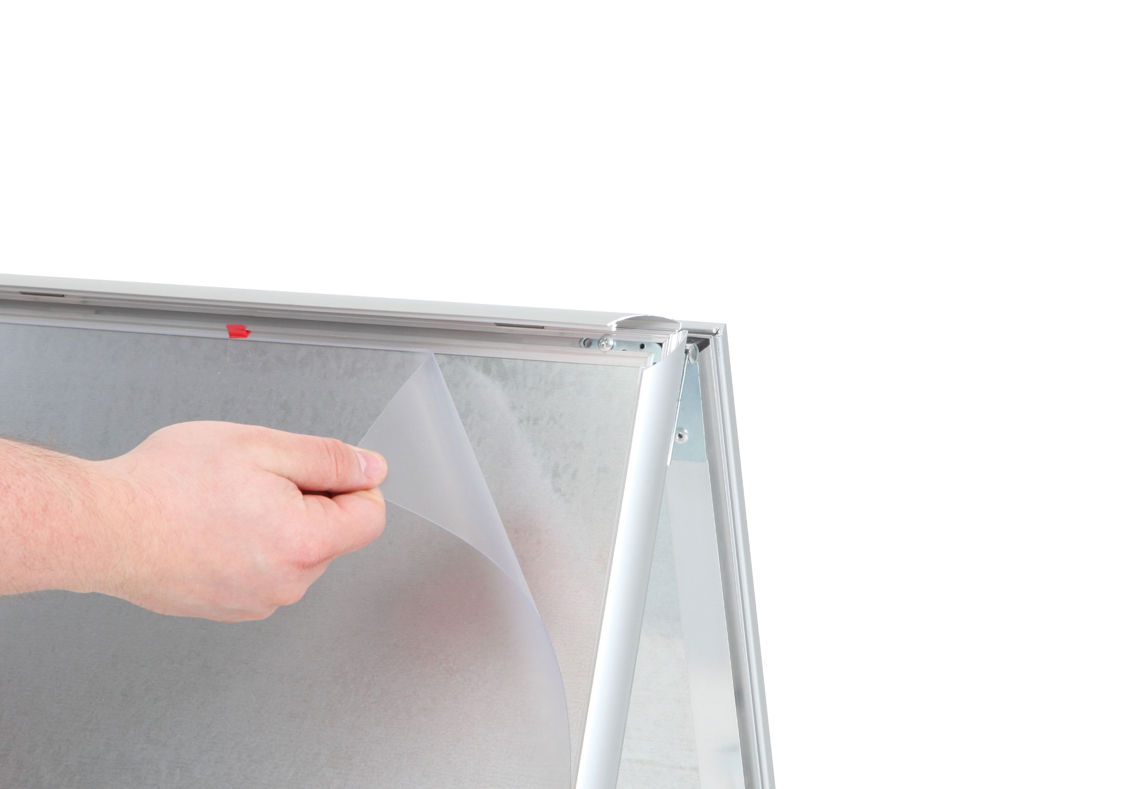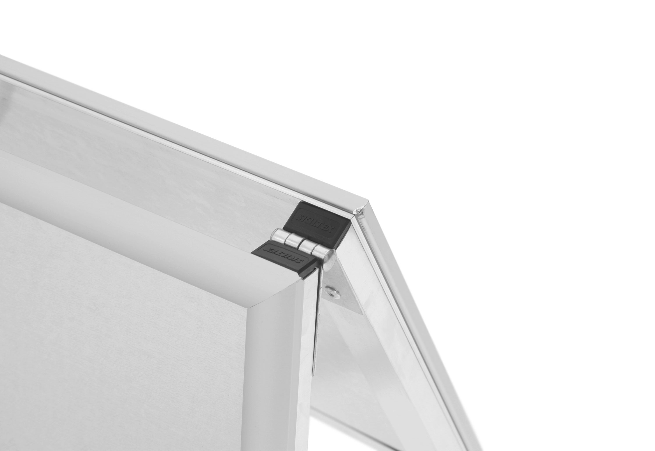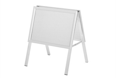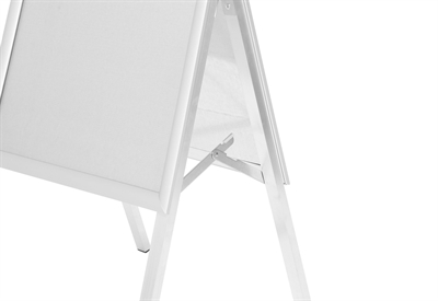 Skiltene er utstyrt med et praktisk hengsel i siden, som betyr at de kan holdes helt flatt når du bretter dem sammen. Dette gjør det veldig enkelt å flytte skiltet rundt, og det tar minimalt med plass under oppbevaring. Disse A-skiltene er selvfølgelig dobbeltsidige og har to plakatholdere – en på hver side.