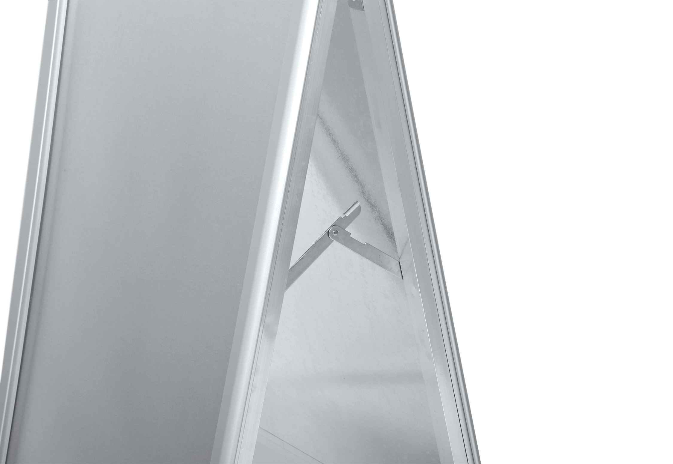 Alu-Sign Pro gatebukk er mobile. De er laget av lette materialer - rammene er laget av anodisert aluminiumsprofil og bakplaten er laget av galvanisert stål. Dette gjør skiltene enkle å flytte rundt på. Skiltene er selvsagt utstyrt med ikke-reflekterende A-PET frontplater, slik at direkte sollys ikke hindrer at ditt budskap blir sett.