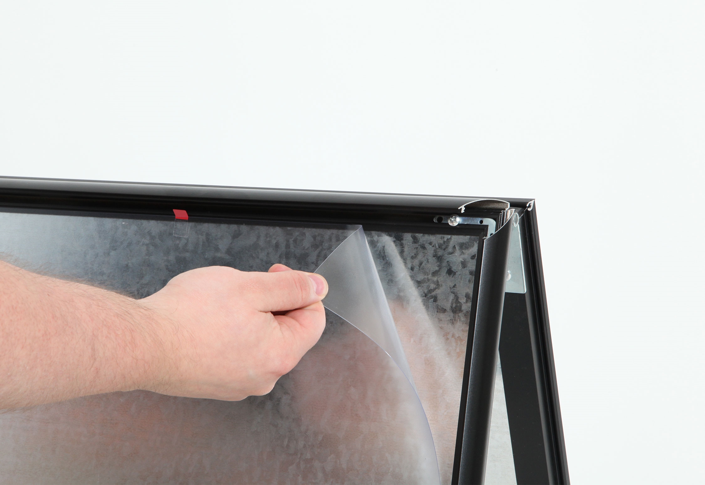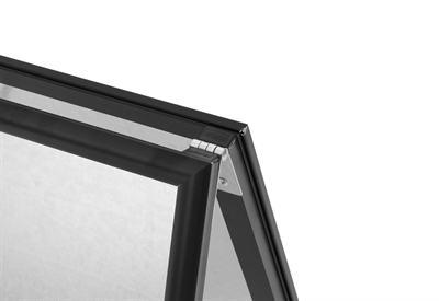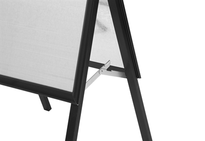Skiltene er utstyrt med et praktisk hengsel i siden, som betyr at de kan holdes helt flatt når du bretter dem sammen. Dette gjør det veldig enkelt å flytte skiltet rundt, og det tar minimalt med plass under oppbevaring. Disse A-skiltene er selvfølgelig dobbeltsidige og har to plakatholdere – en på hver side.