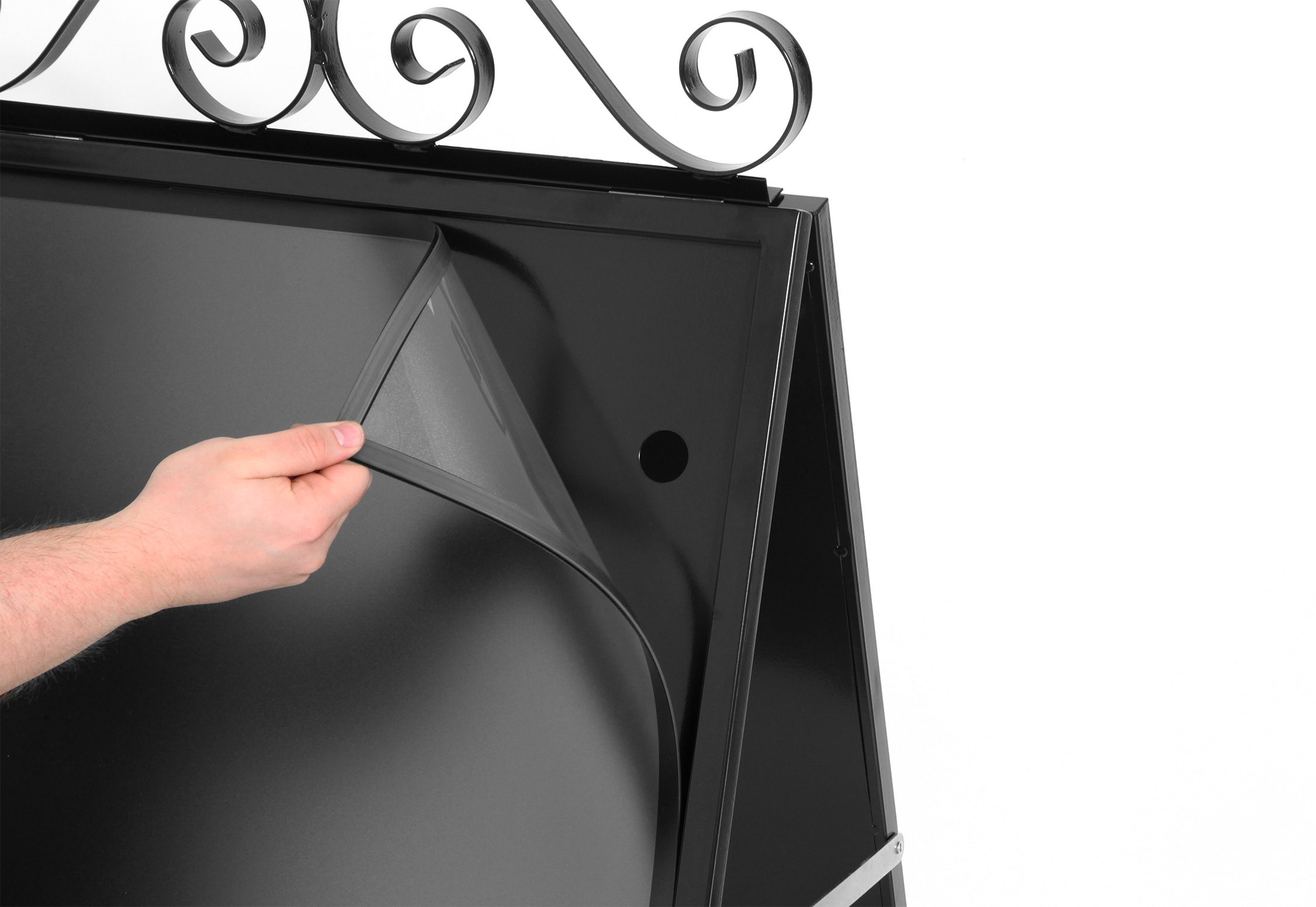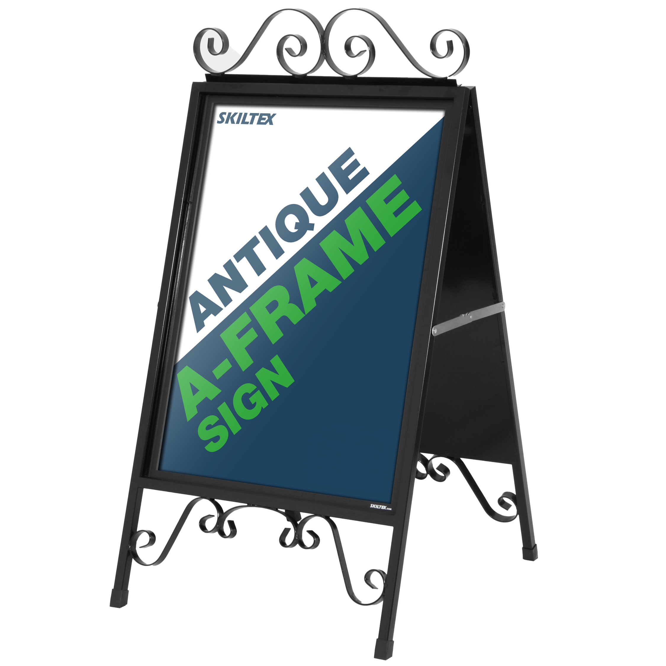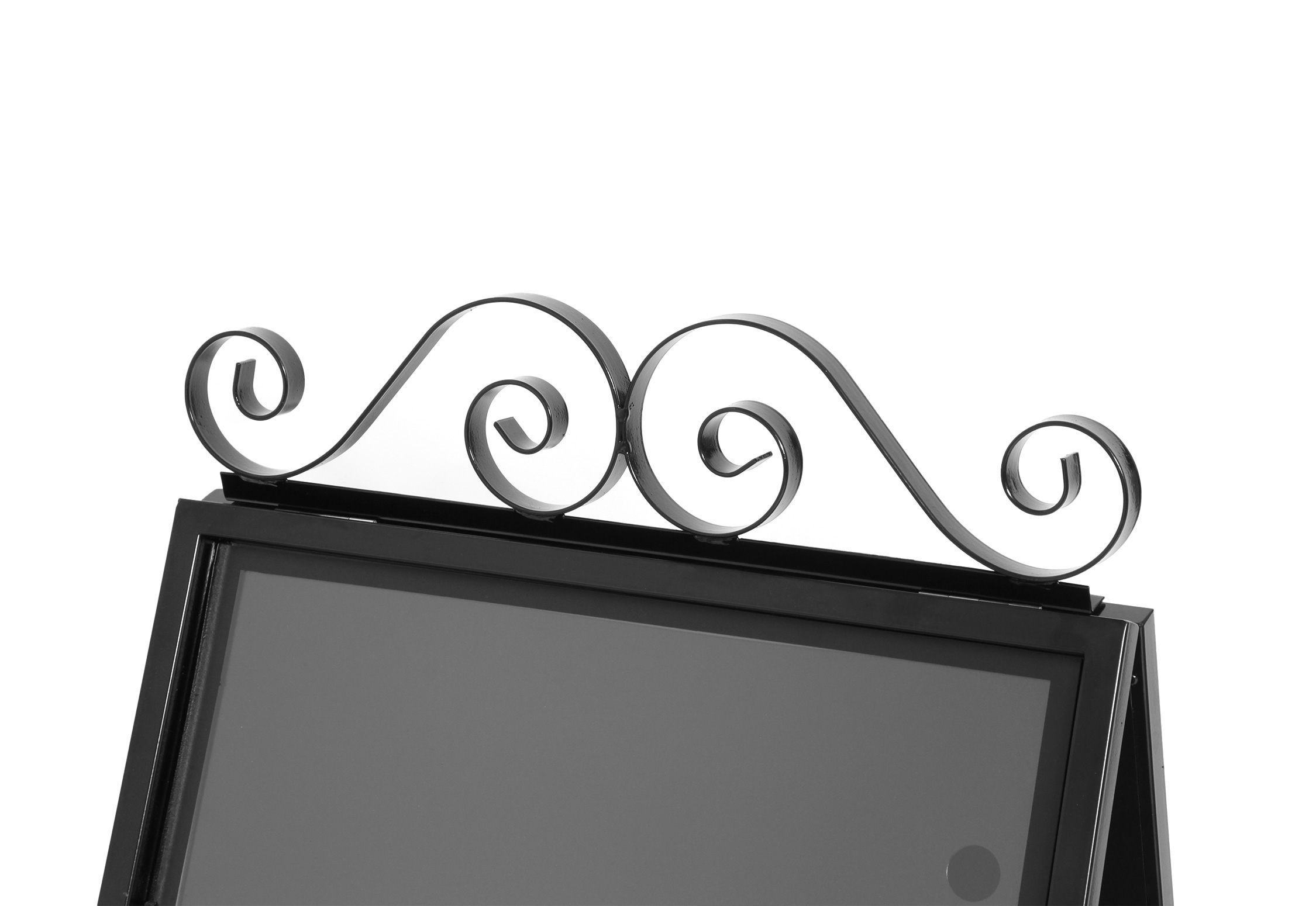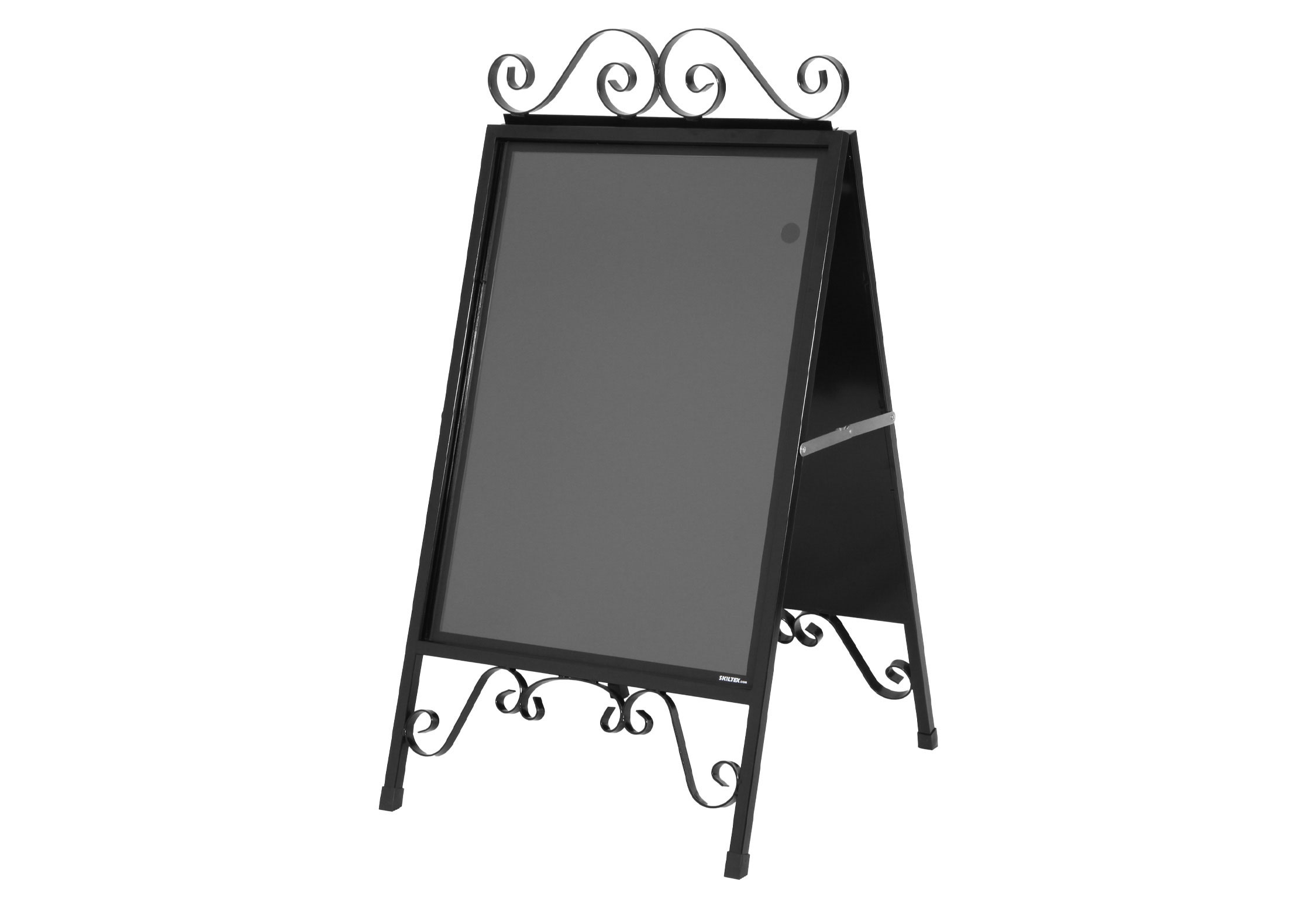 Antikk A-skilt - som dekker alle dine behov for å vise frem dine budskap. Denne skilt er en luksusutgave og det er virkelig gjort noe ut av designen, utformning og dekorasjon. Dermed har skiltet både i topp og bunn en sjarmerende smijernskonstruksjon.