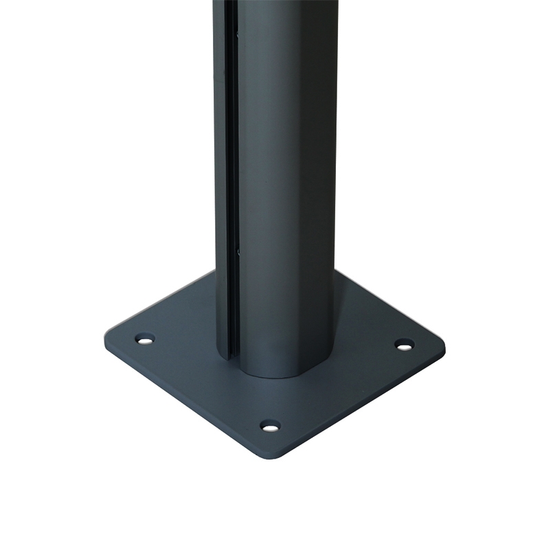 De 2 meter høye stolper leveres som standard med metallføtter til fastgjørelse på betong. Skal stolpene ikke monteres på betong kan de også leveres med en 50 cm fot, som kan graves ned i bakken.