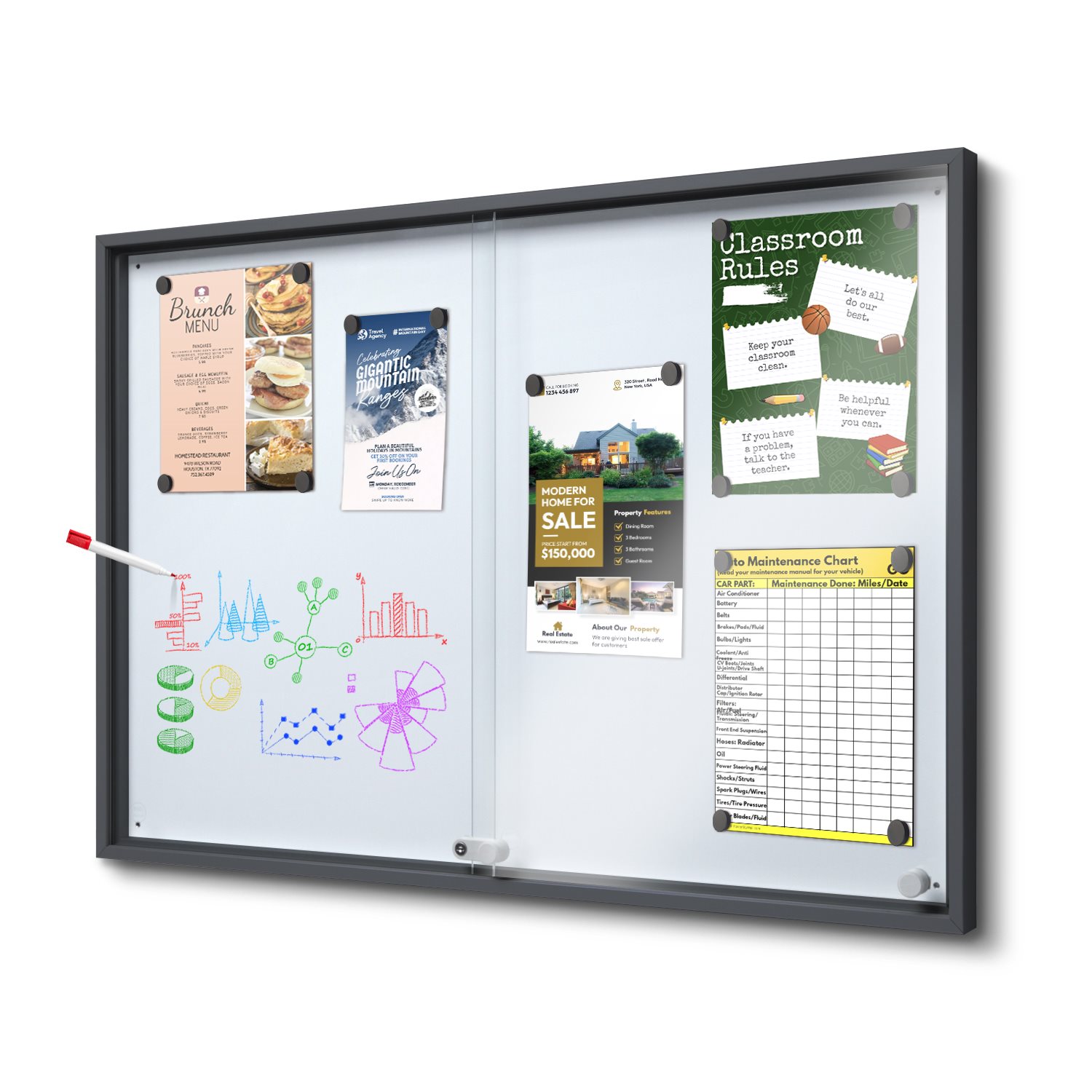 Antrasitt Whiteboard oppslagsskap med skyvedører og lås