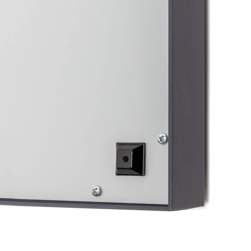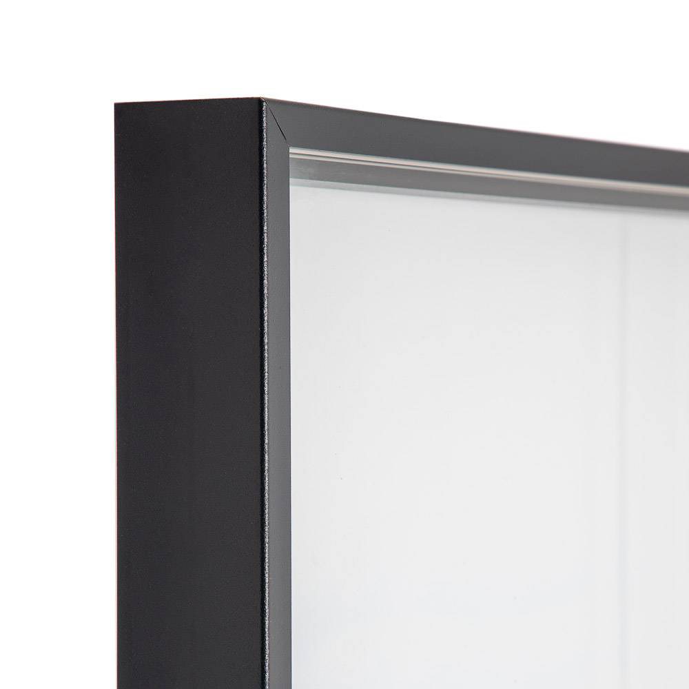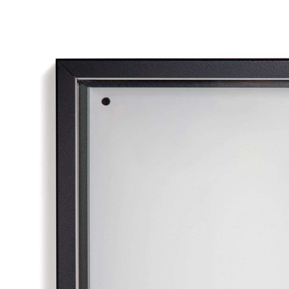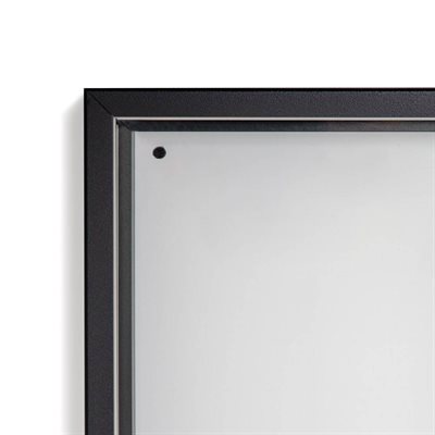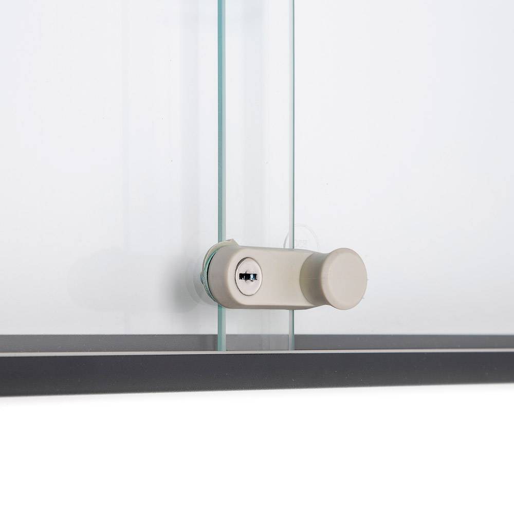 Skap laget av metall og aluminium, magnetisk skrivbar innvendig whiteboard tavle, med en dybde på 23 mm, slank antrasittgrå profilramme, skyvedører av 4 mm sikkerhetsglass med innebygd lås. 2 nøkler følger med. Kan brukes med whiteboard-tusjer og magneter.