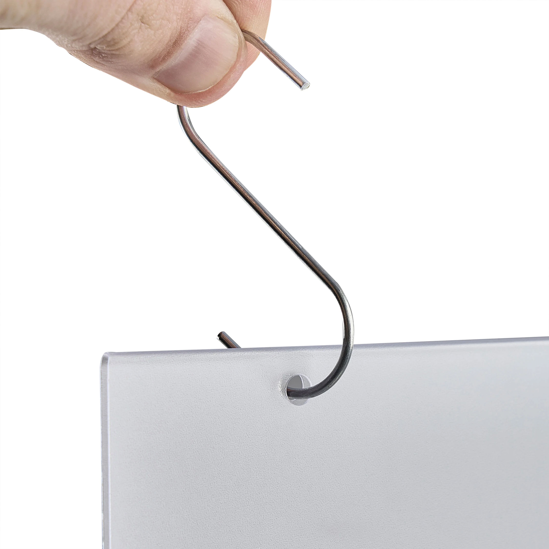 Klassisk og elegant plastlomme i A4-format (210 × 297 mm), laget i slitesterk og gjennomsiktig APET-plast. Med fire hull for å kunne henge flere lommer etter hverandre – ideelt for synlig og fleksibel visning fra tak eller kurv.