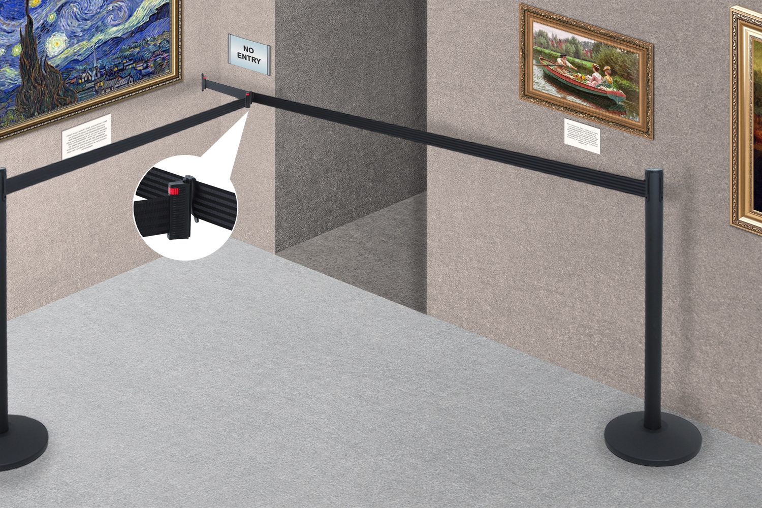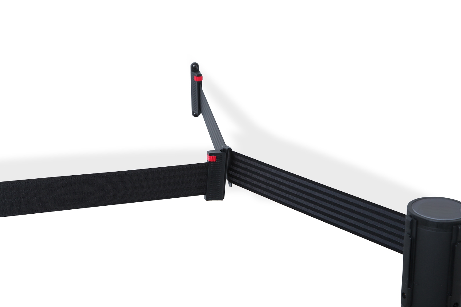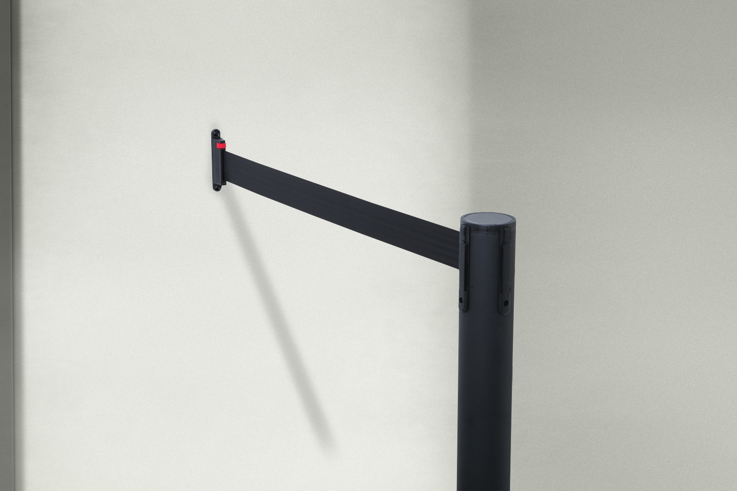 Dette beslag gjør det mulig at sette fast båndet fra et avsperringssystem til veggen.