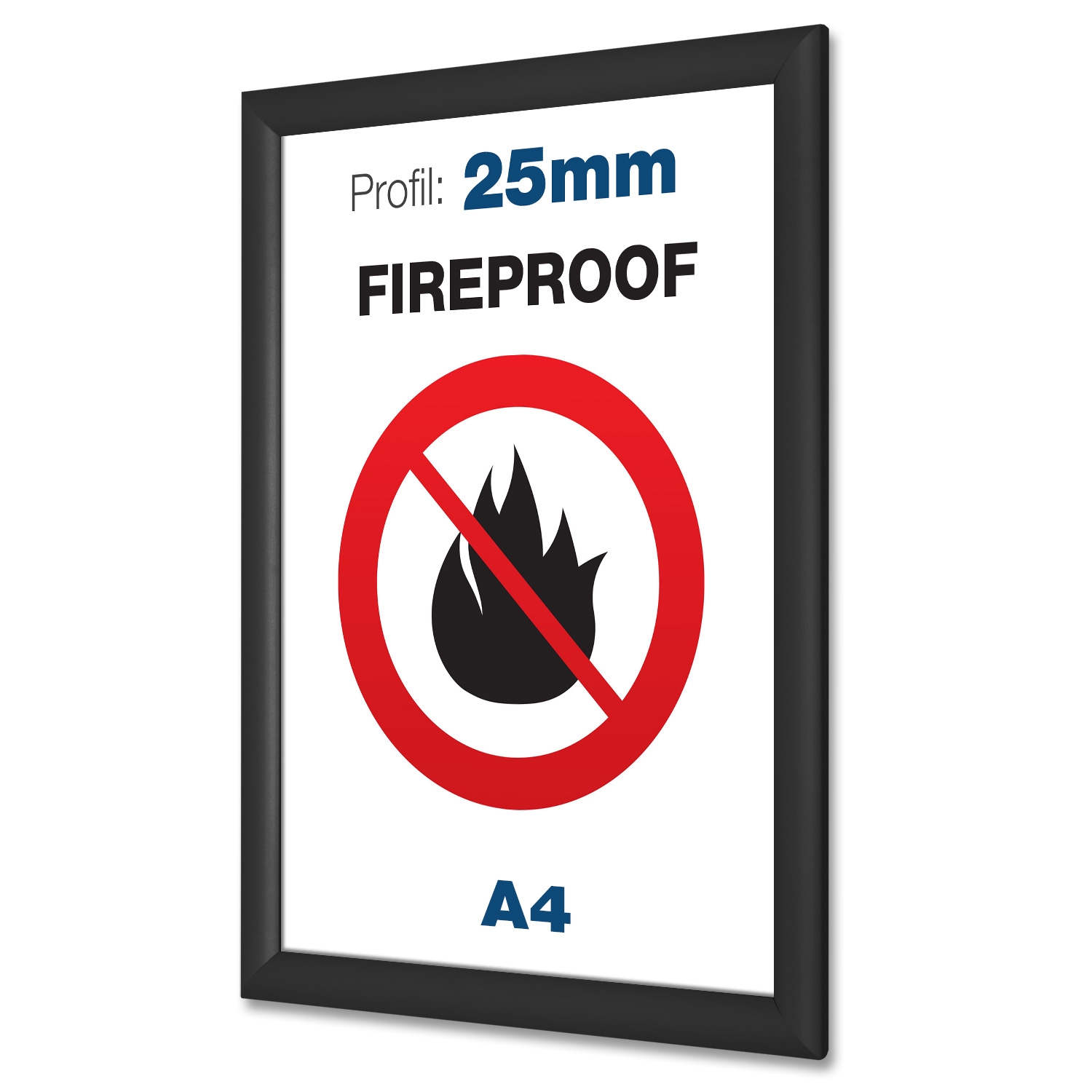 B1 Brannsikker sort klikkramme med 25 mm profil - A4