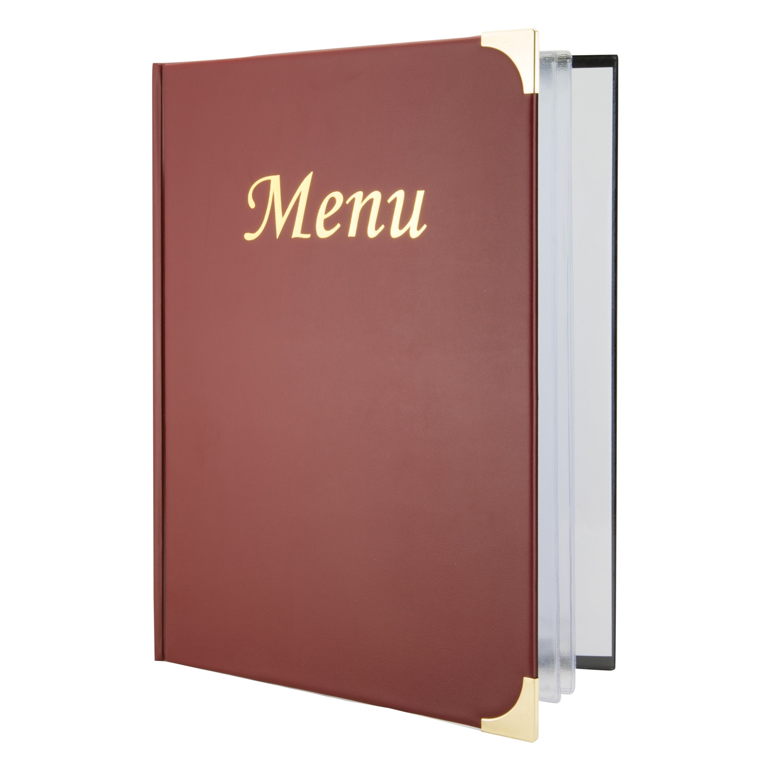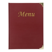 Vin-rød Menypermer med gullfargede metallhjørner