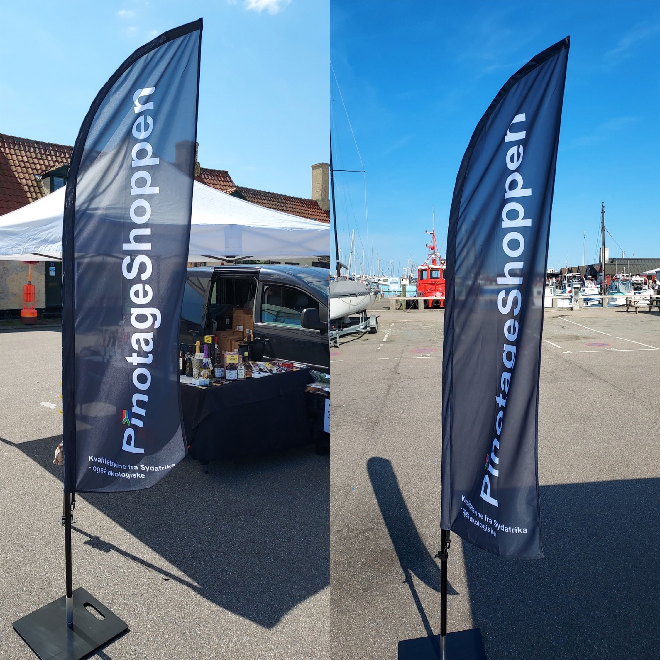 Våre beachflagg leveres med stang, flagg og bæretaske inkludert i prisen. Siden vi har 5 forskjellige føtter til beachflaggene, må foten kjøpes separat som tilbehør. Du finner føttene både under tilleggsprodukter og relaterte varer.