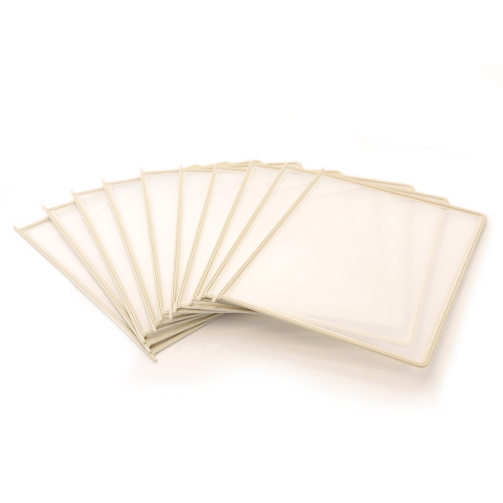 10 stk beige A4 dobbelsidige plastlommer til registersystemer.