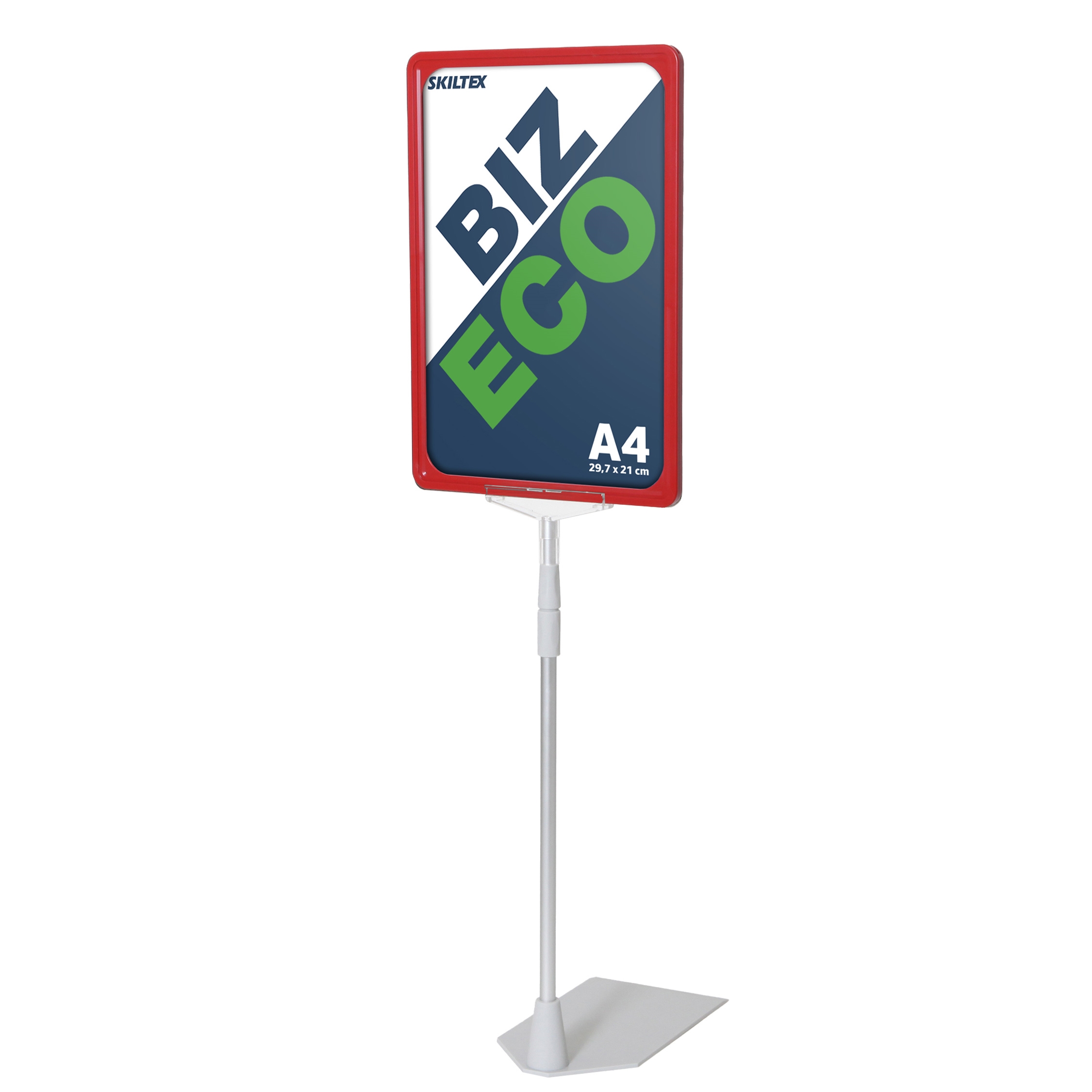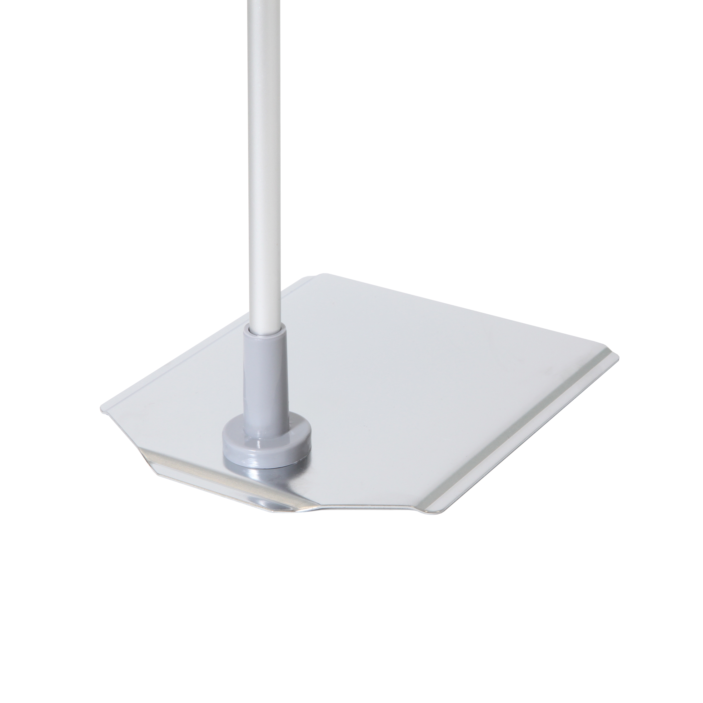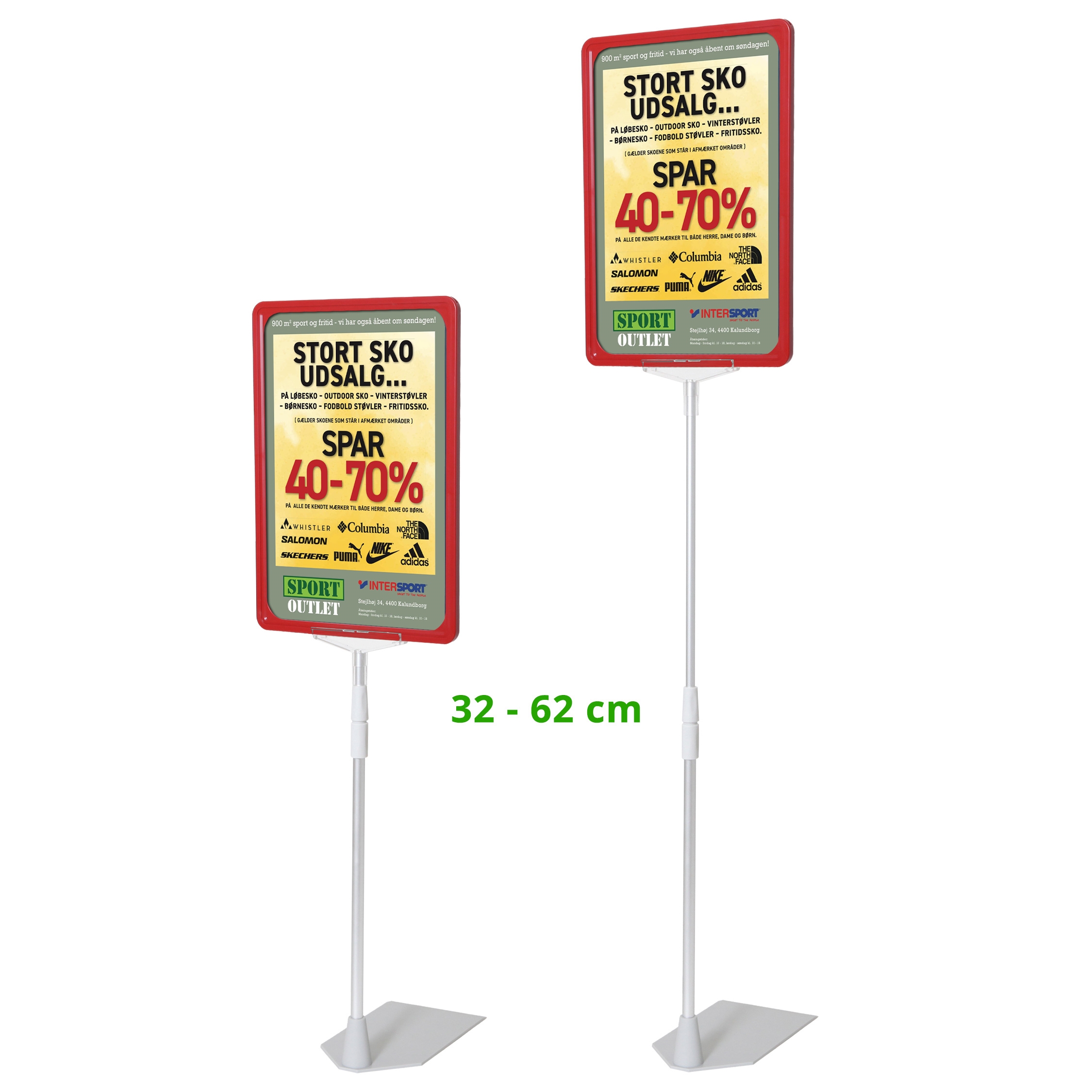 Lavpris skiltstativ, som leveres med teleskopstang i aluminium, som kan justeres i høyden fra 32 - 62 cm og en grå lett plastfot.