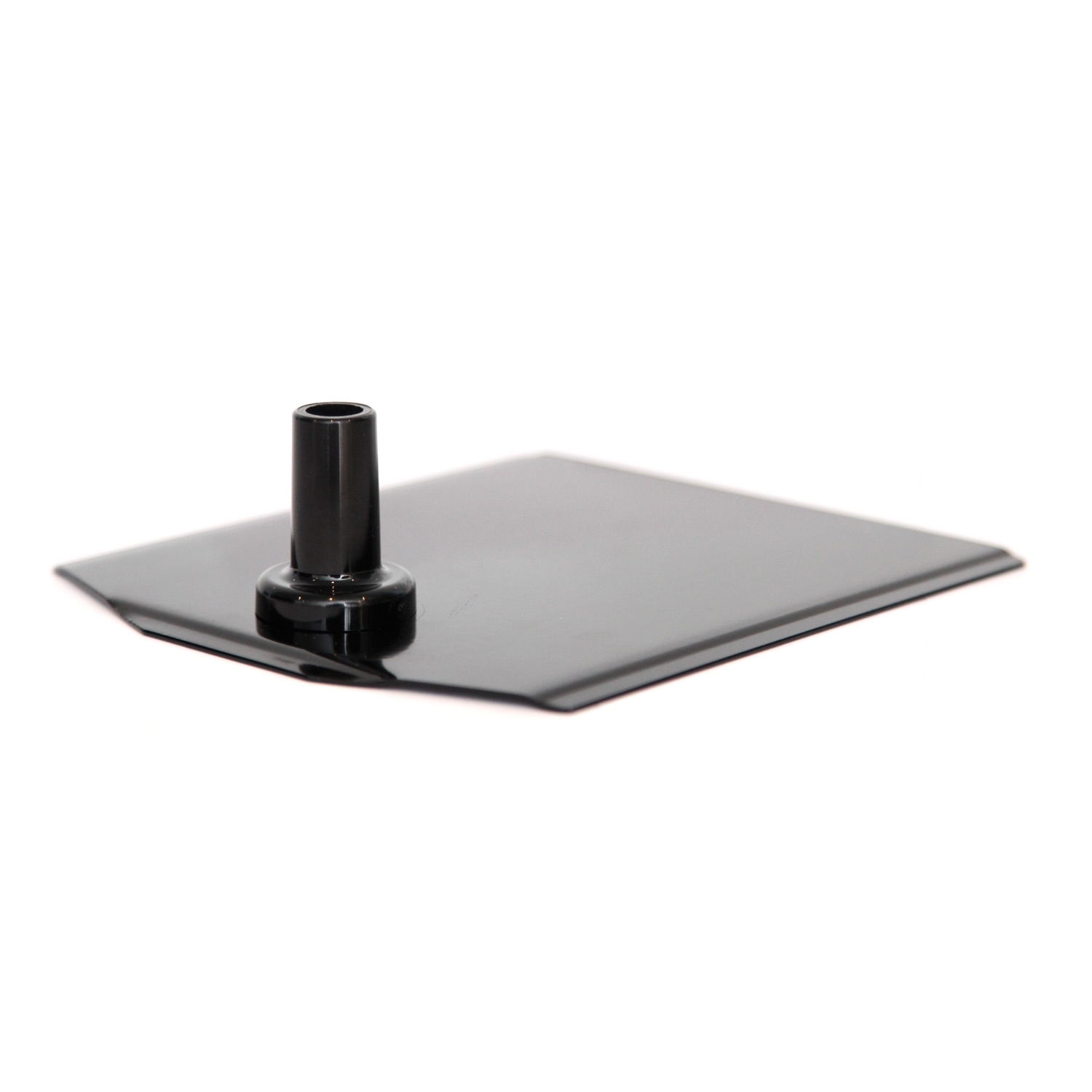 Kraftig sort pulverlakkert skiltholderfot i metall for Ø 12 mm stenger. Størrelse: 185x160x 1,5mm