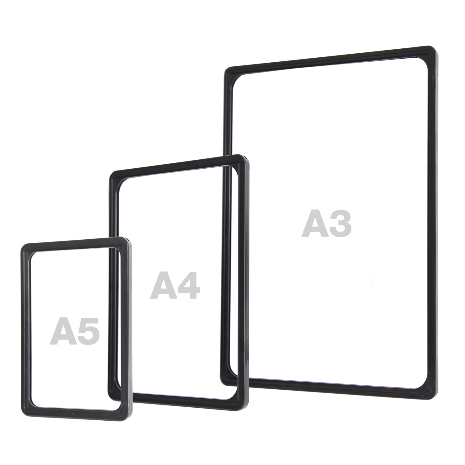 Sort ramme produsert i ABS-plast. Plakaten settes enkelt inn fra toppen.