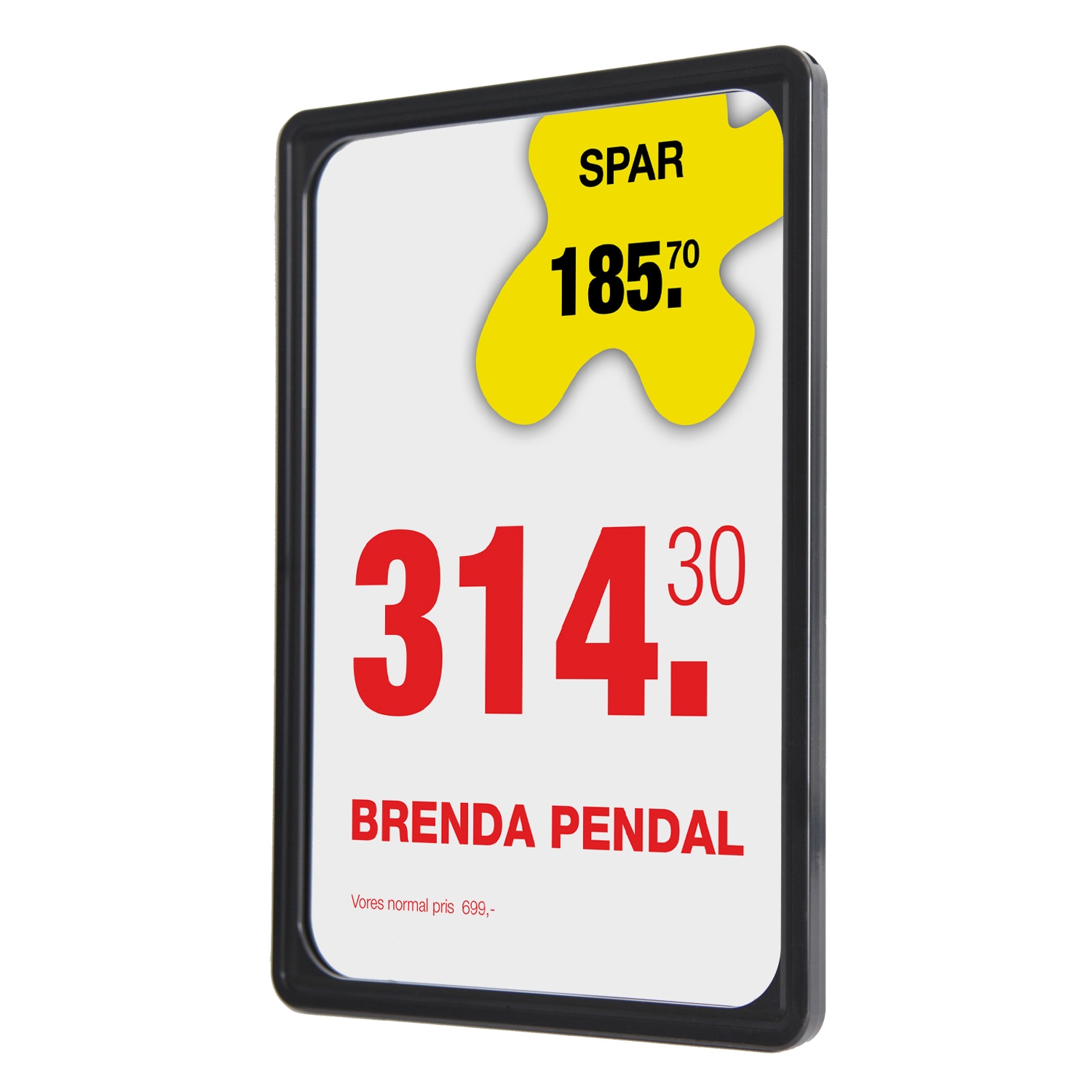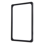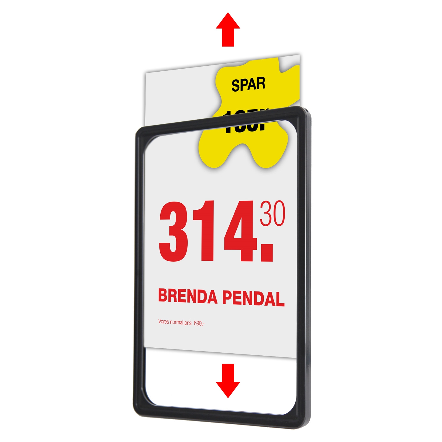 Sorte rammer produsert i ABS-plast. Plakaten settes enkelt inn fra toppen.