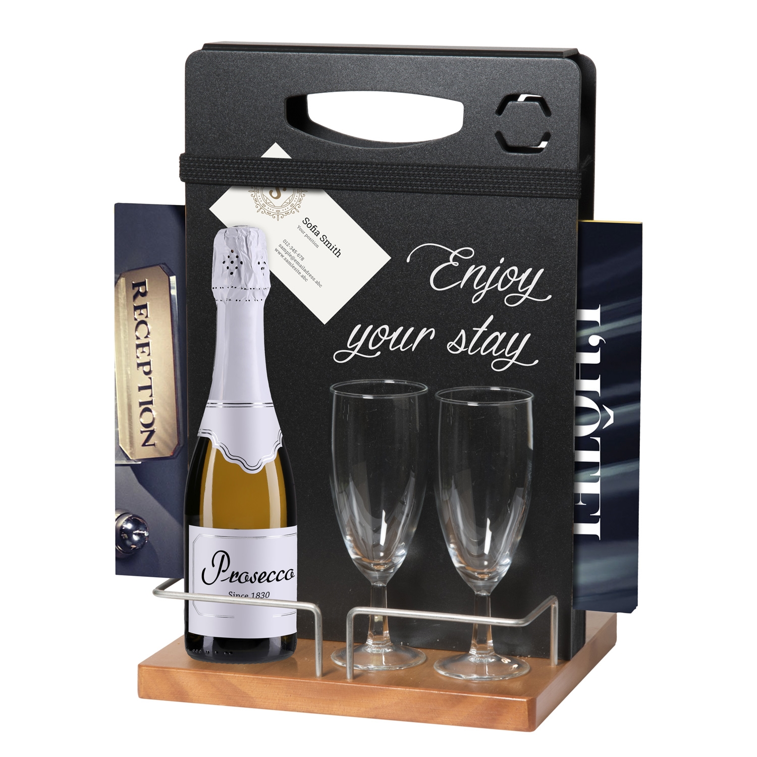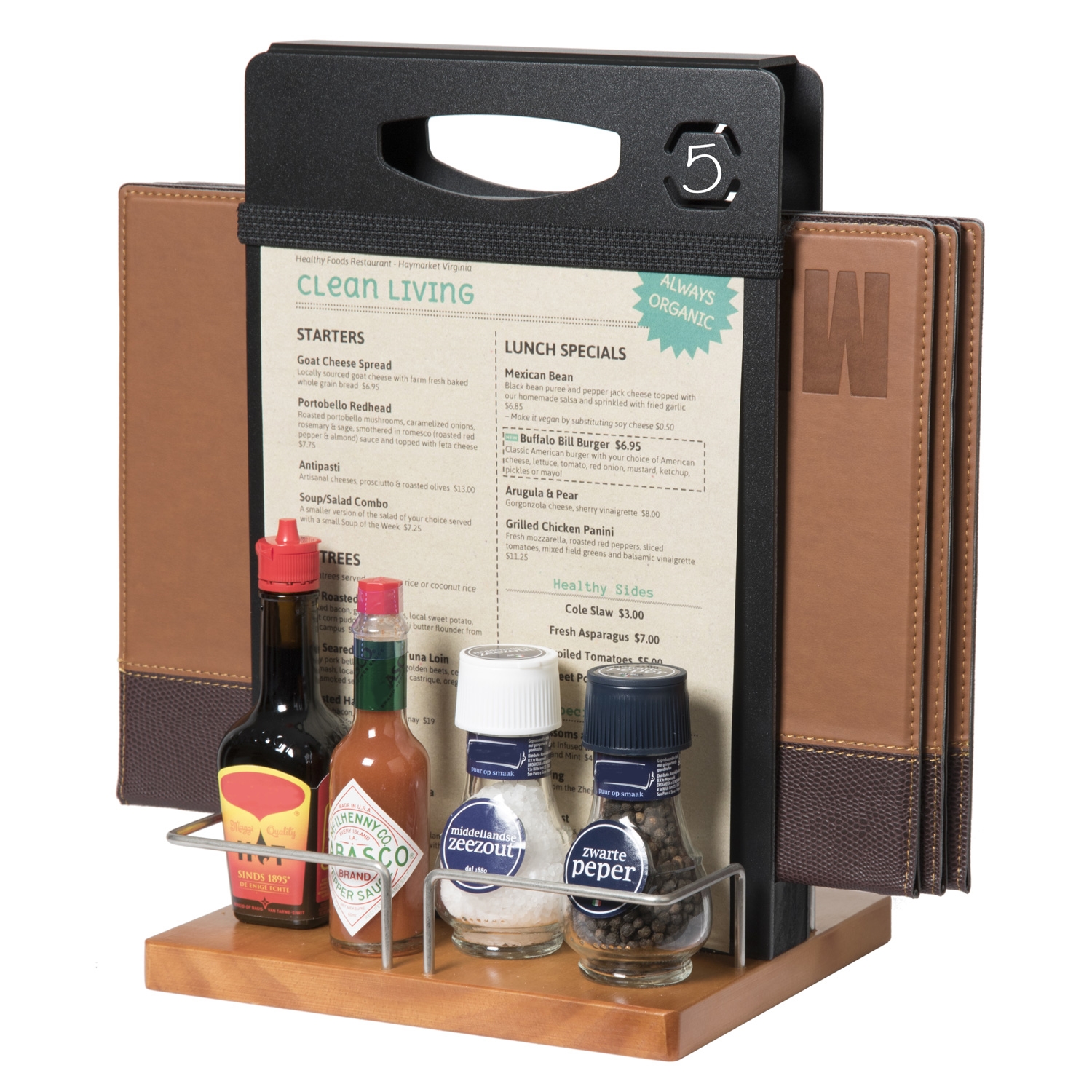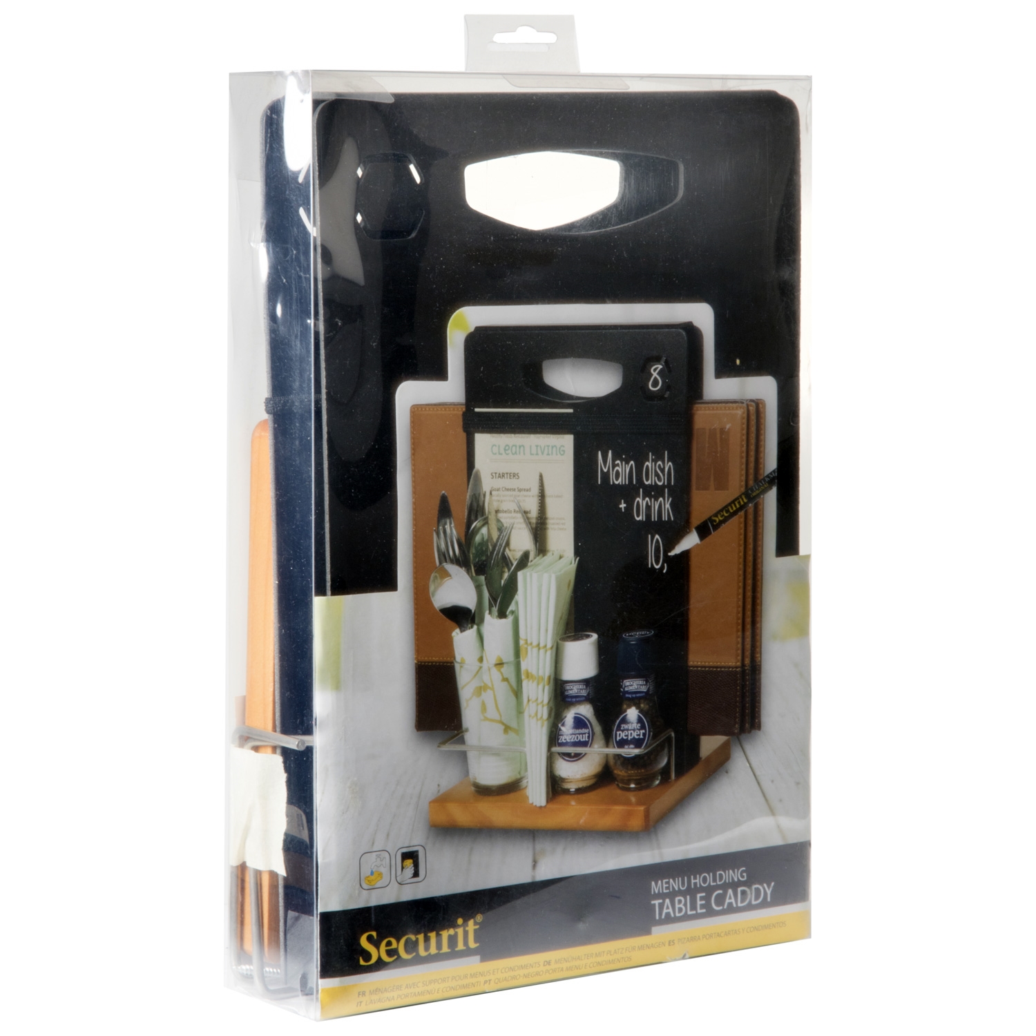 Våres smarte bord caddy er designet til at holde menymapper eller blad mellom kritt-tavlene.