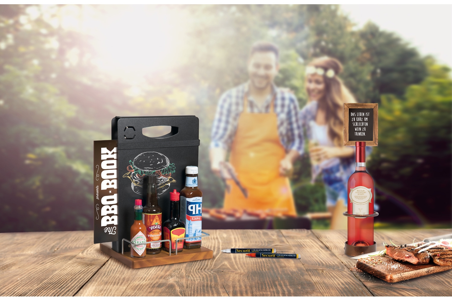 Toppdelen kan enten skrives på med kritt marker penne eller monteres med en meny med hjelpe av det inkluderte nylonbånd.