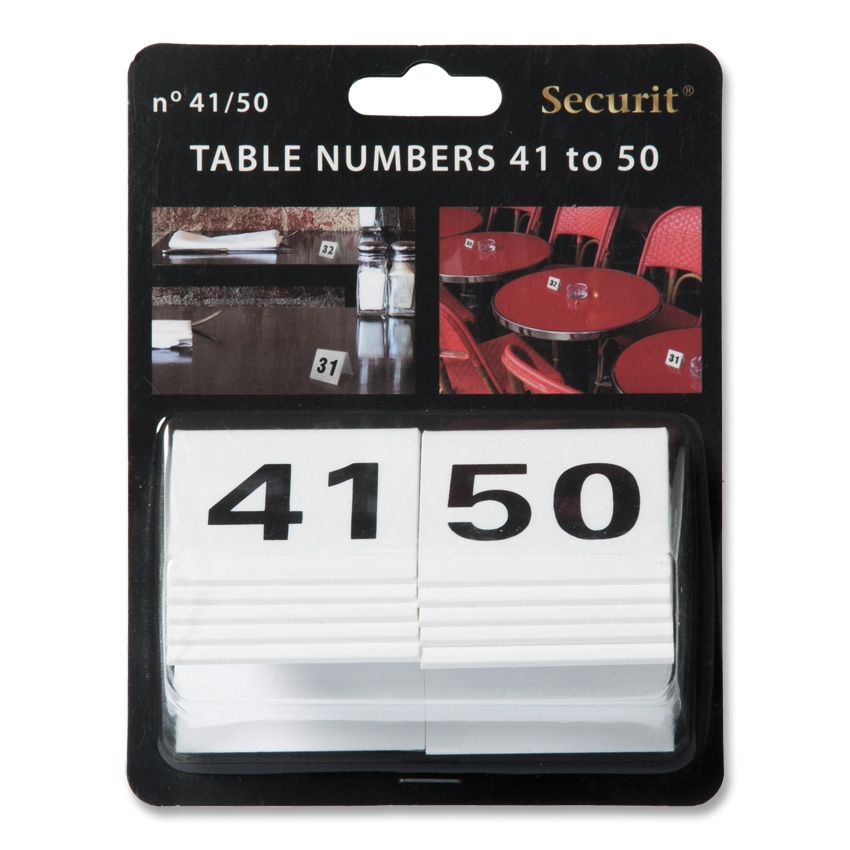 Bordtall skilt med nr. 41-50