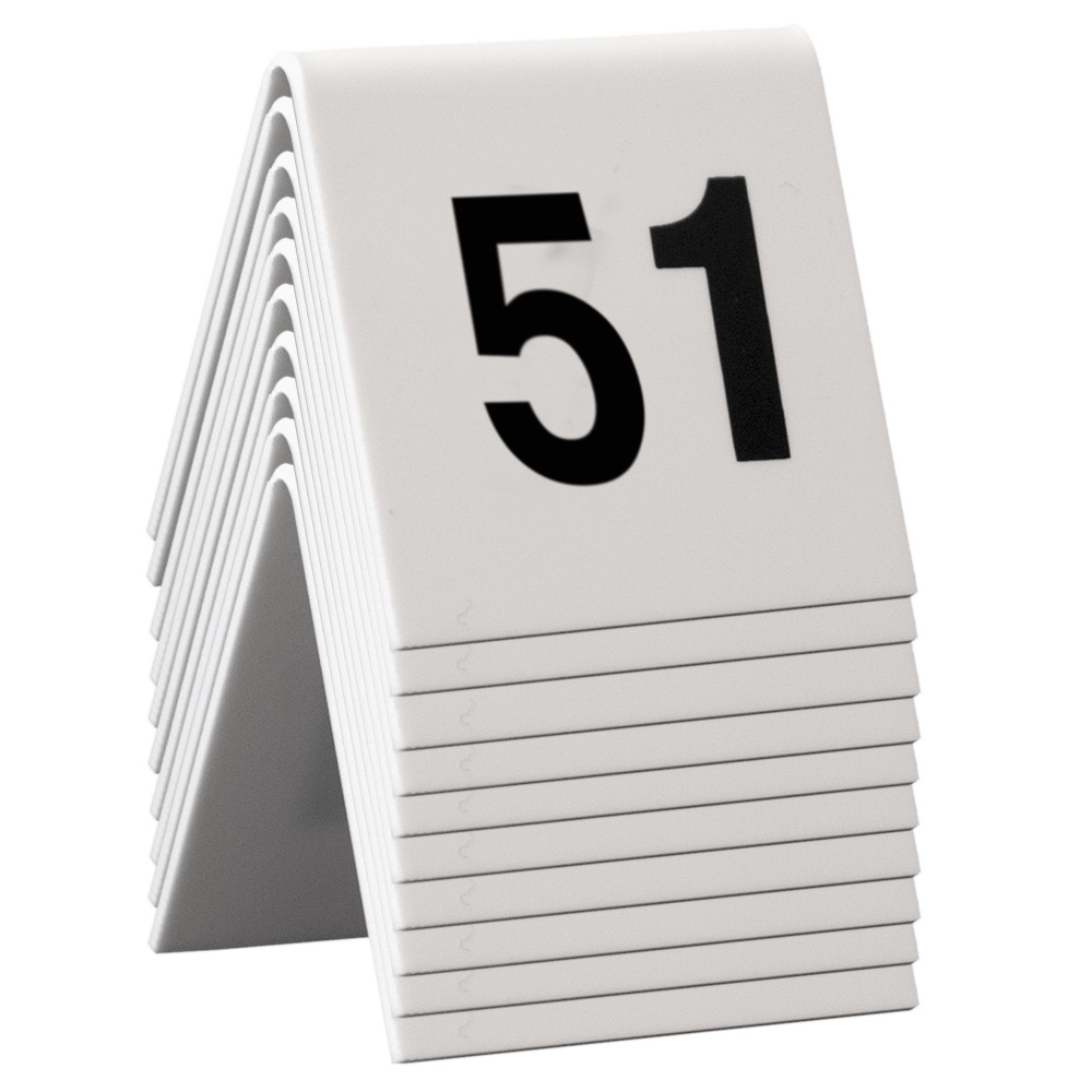 Bordtall skilt med nr. 51-60