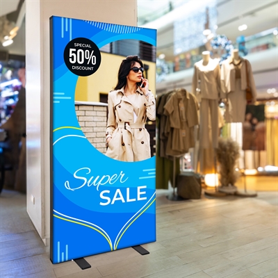 En perfekt lysvegg til dobbelsidige reklamer. Ideel til bruk ved messe, utstillinger, arrangementer eller i offentlige rom.