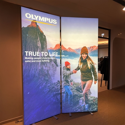 Brightbox Single er en slank enkeltsidig lysvegg med 65 mm profilbredde, som er utstyrt med kraftige LED-lys på baksiden. En perfekt lysvegg for enkeltsidige reklamer. Ideell for bruk på messer, utstillinger, arrangementer eller i offentlige rom.