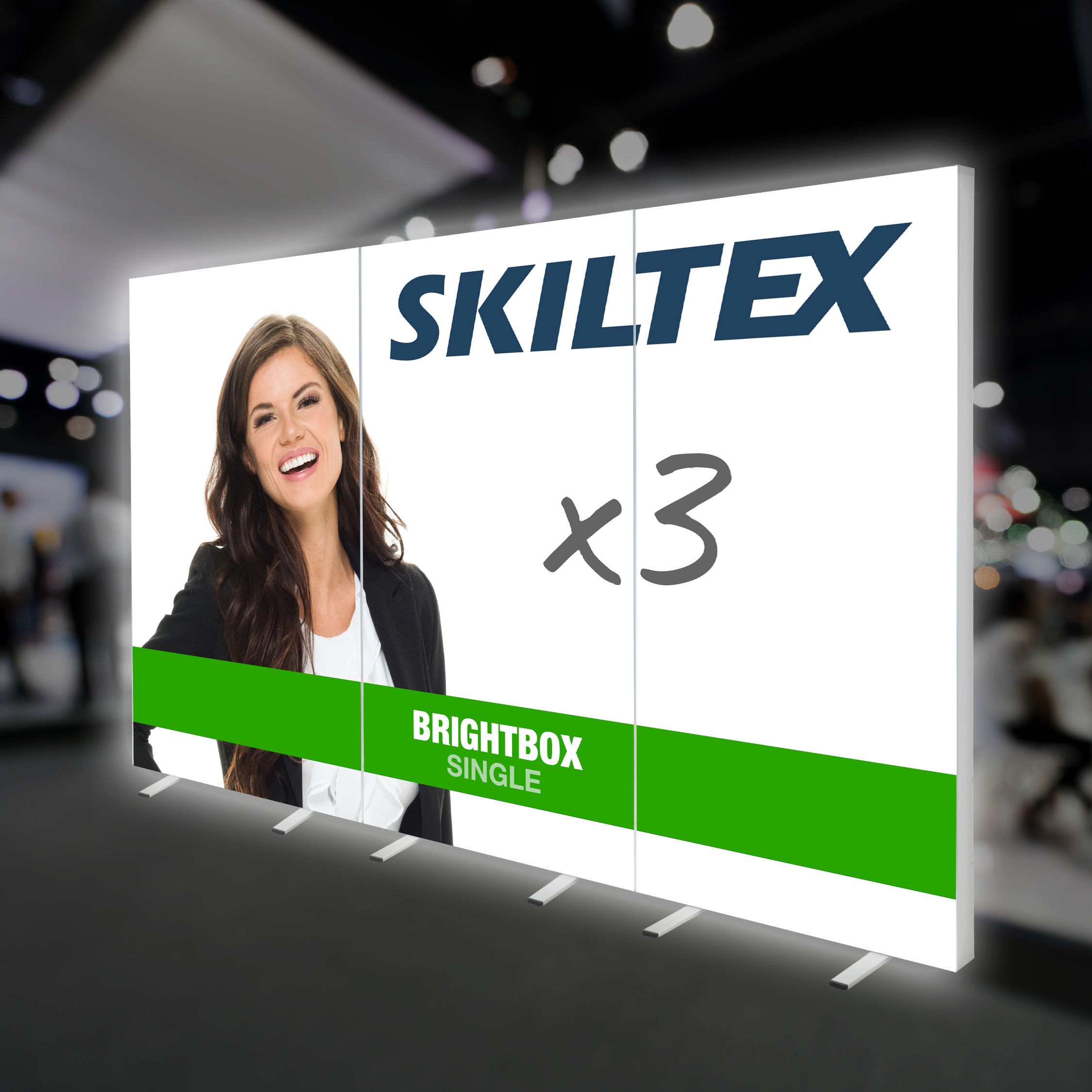 Med rask, verktøyfri og trinnvis installasjon er Brightbox Single et fantastisk skinnende mobilt display-system for bruk på messer og utstillinger. Det gir et flott og profesjonelt utseende til enhver messestand.