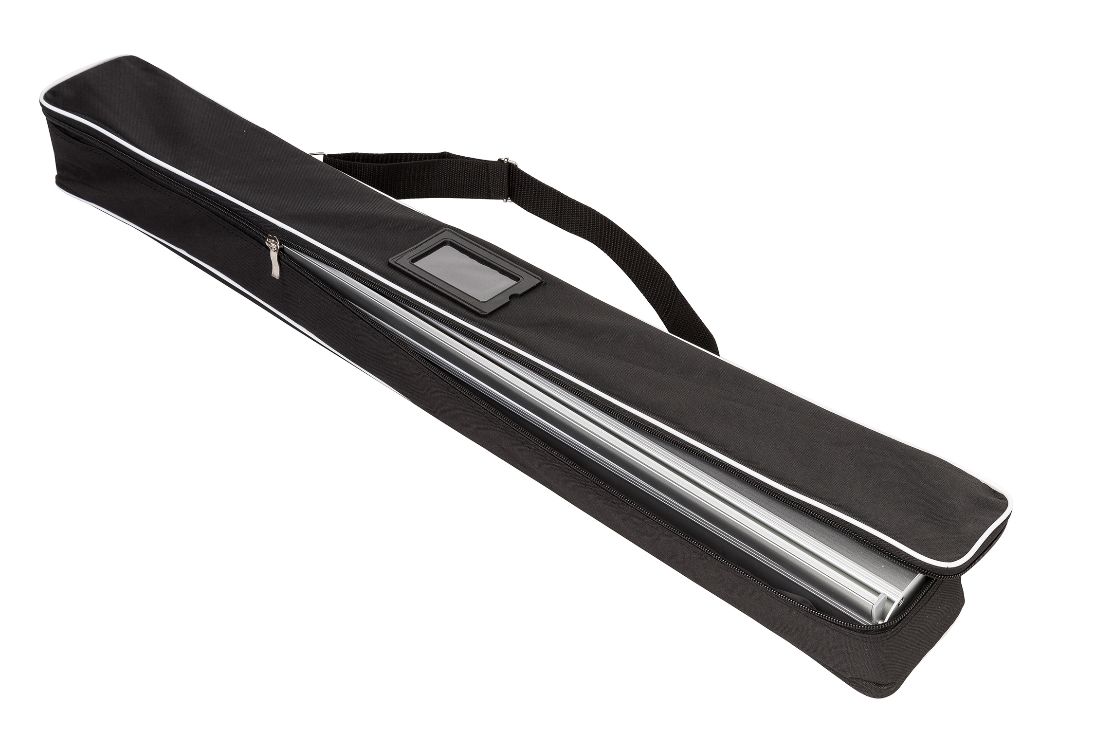 Leveres komplett og klar til bruk med system, banner, print og luksus svart polstret bæreveske.