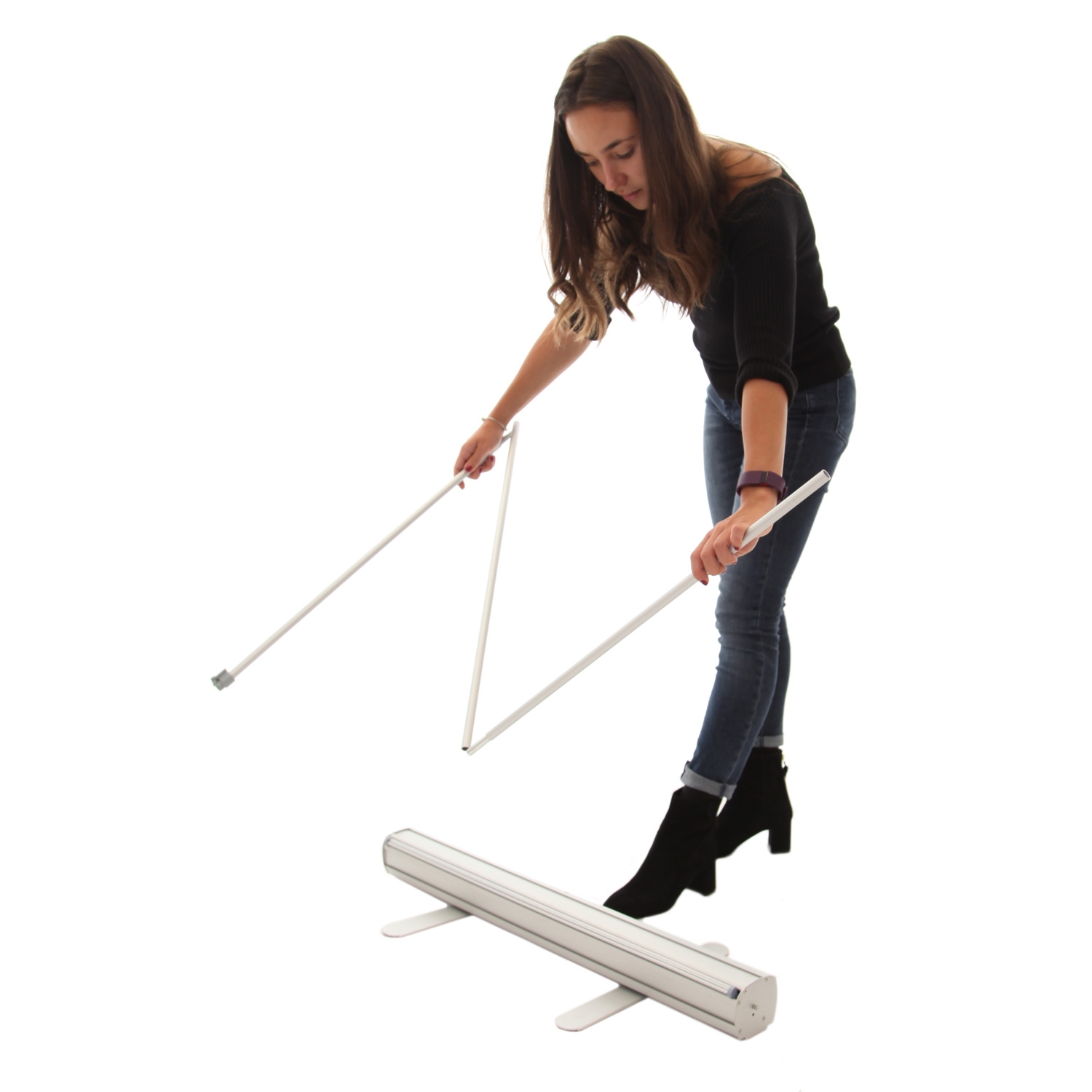Leveres komplett og klar til bruk med system, banner, print og luksus svart polstret bæreveske.