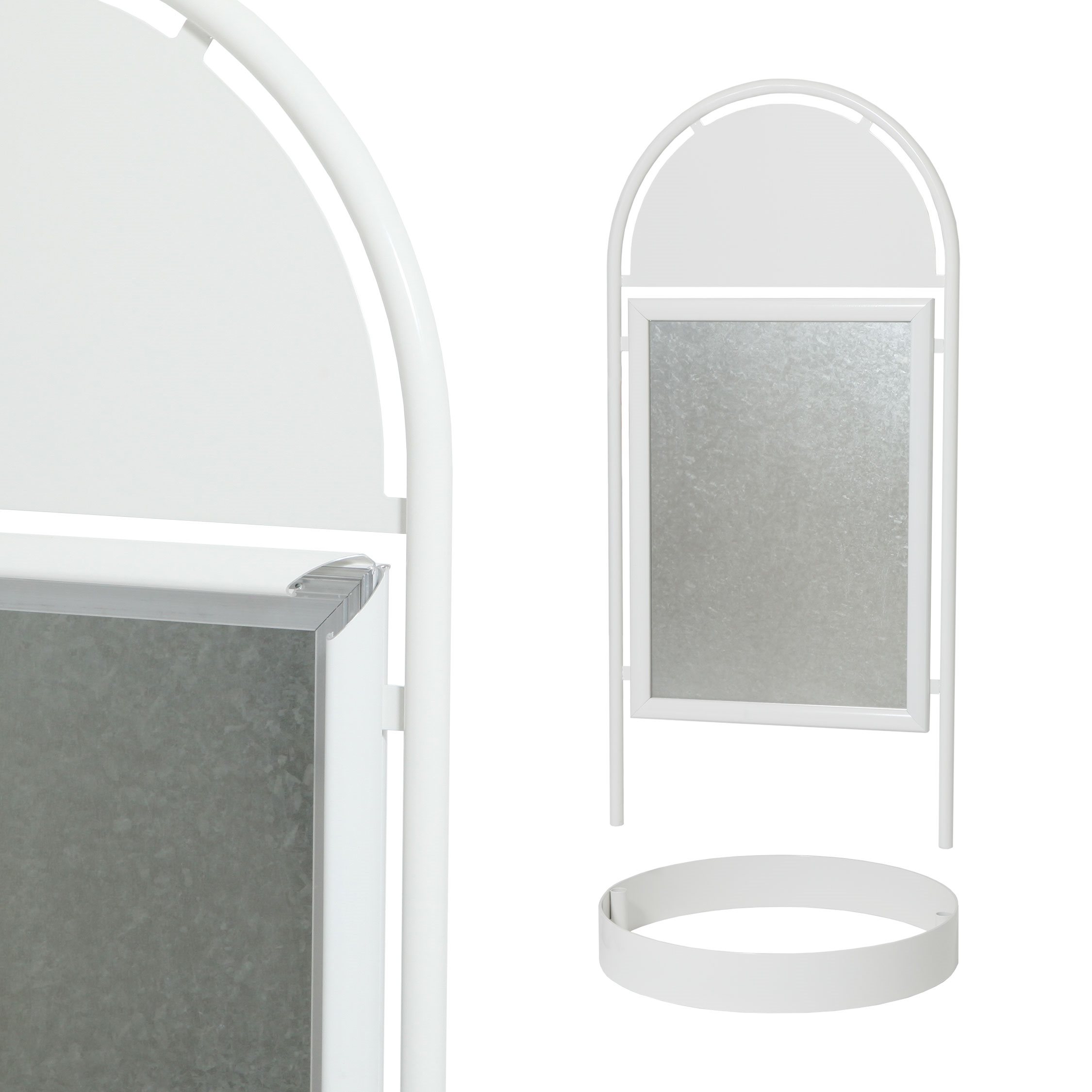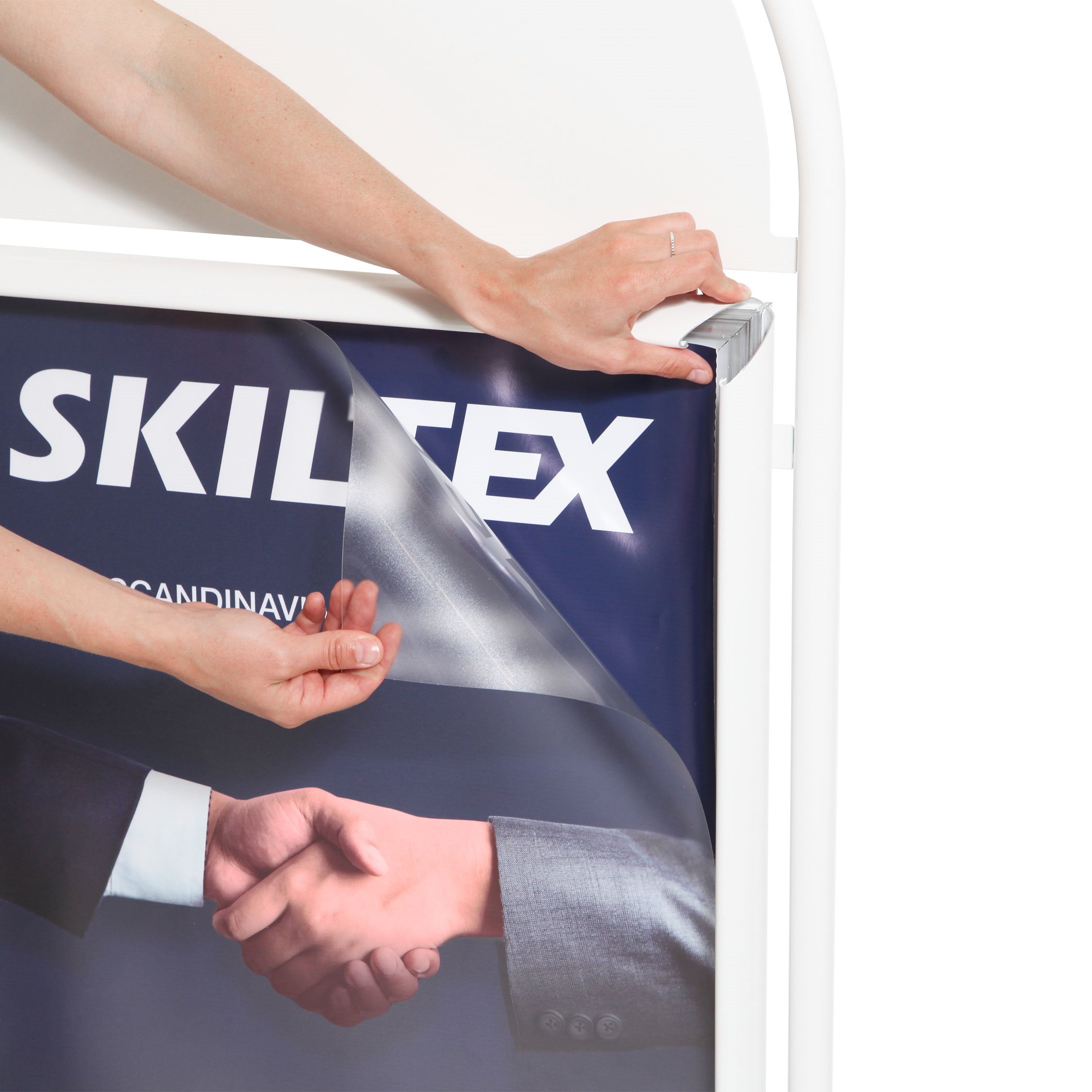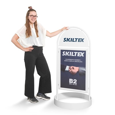 Overflaten er pulverlakkert for å garantere lang levetid. Toppdelen tilbyr god plass til formalogo, bynavn eller budskap. I midten finnes det en innebygget plakatramme som kan holde plakater i størrelsen 50x70cm.