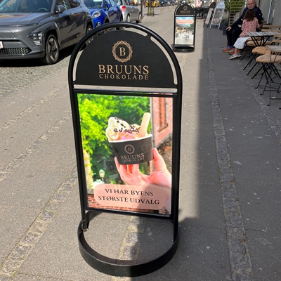 Overflaten er pulverlakkert for å garantere lang levetid. Toppdelen tilbyr god plass til formalogo, bynavn eller budskap. I midten finnes det en innebygget plakatramme som kan holde plakater i størrelsen 50x70cm.