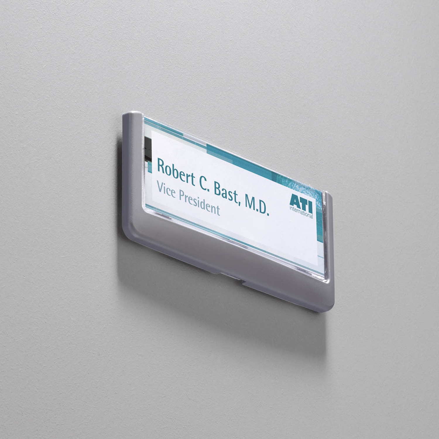 CLICK SIGN dør-/veggskilt med grå grafitt kant og transparent front. Inneholdet er lett at skifte ut; løft bare det transparente frontpanel og sett deretter in dit ønskede ark. Leveres med skruer, klebeputer og neutral innsats.