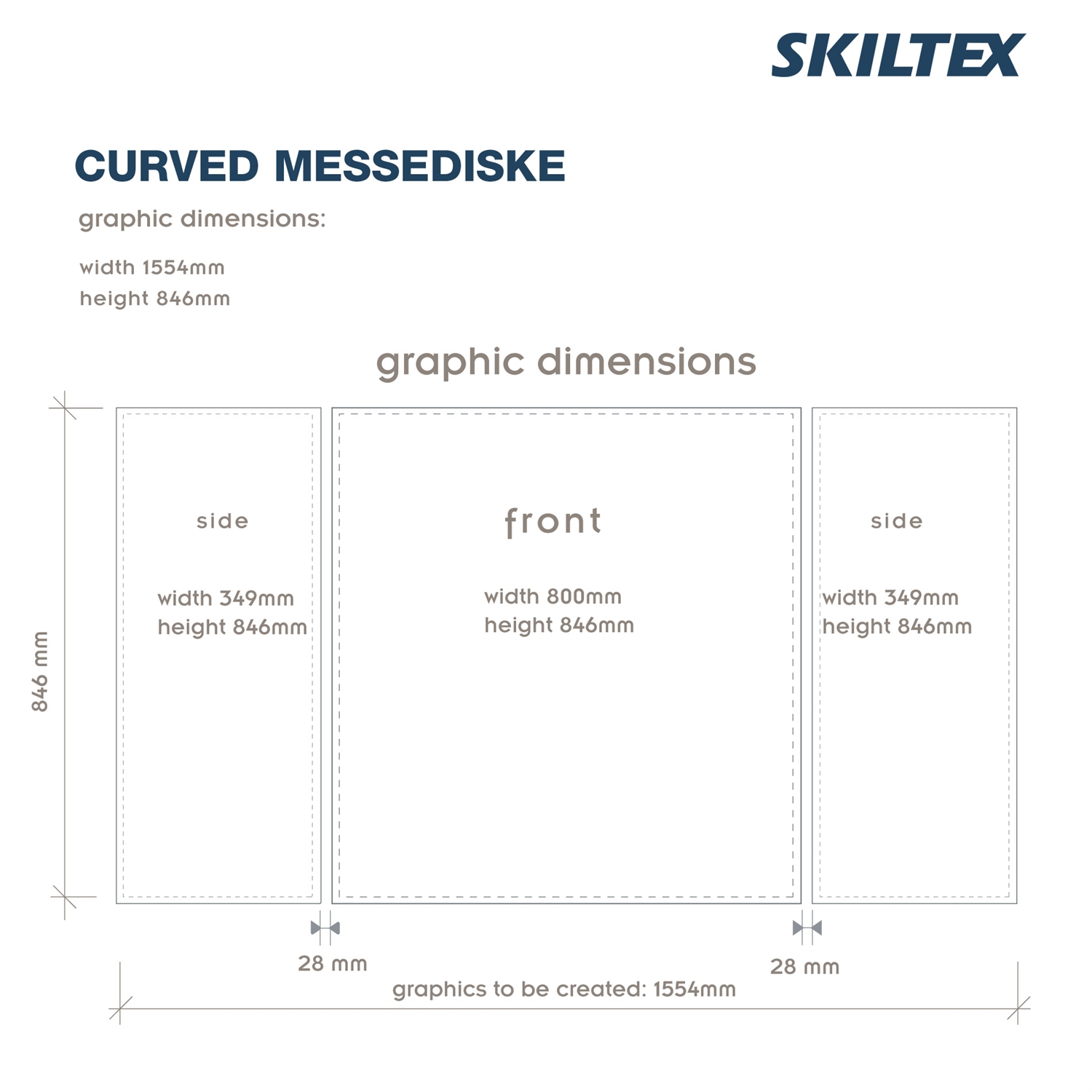 1stk 80 x 846 cm (front) og 2stk 34,9 x 84,6 cm (sider)