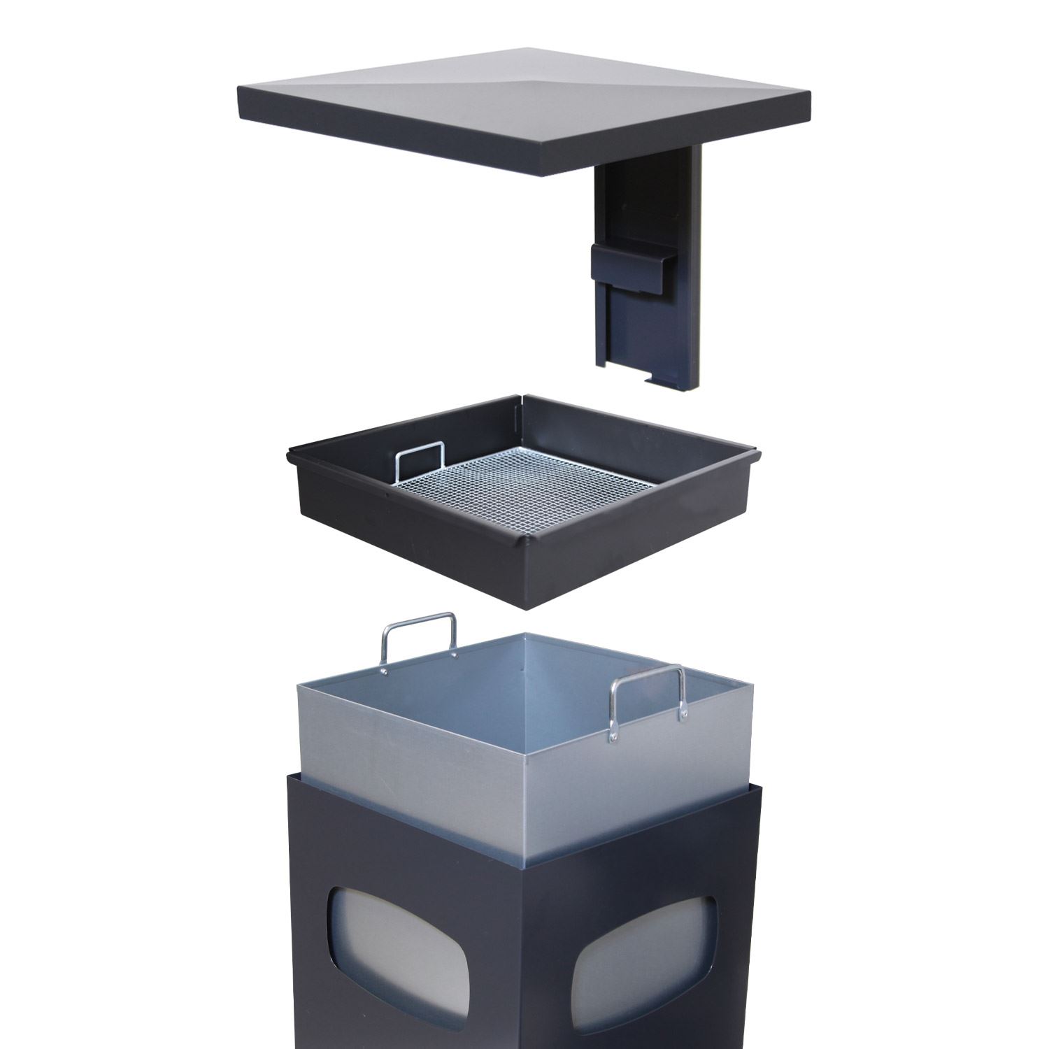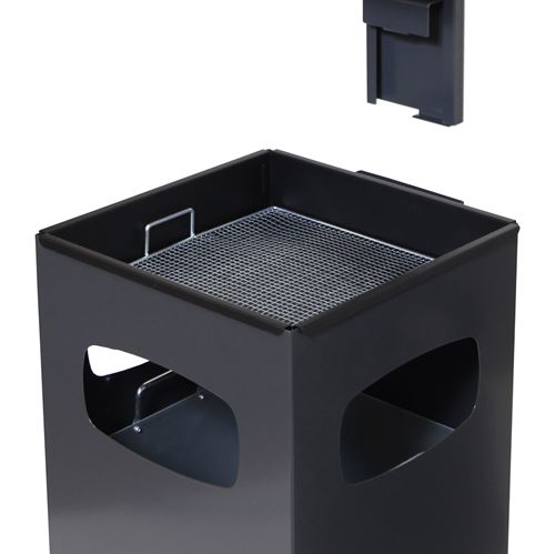 Utendørs søppelbøtte med askebeger og flyttbart lokk.