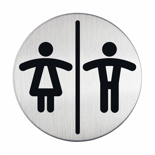 Rund dame/herre toalettskilt av børstet rustfri stål som er ripefri.
